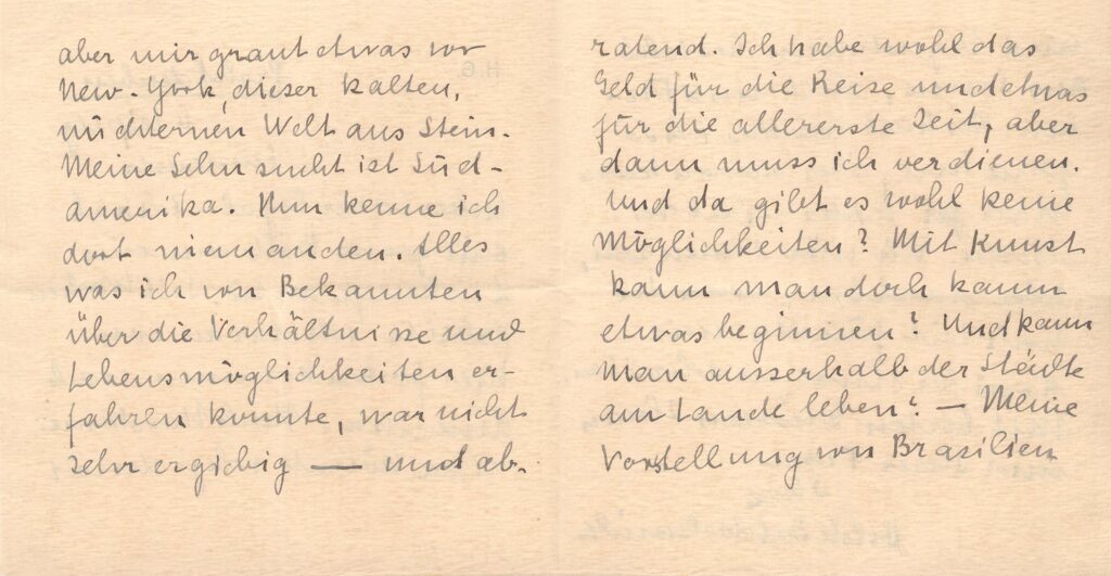 Diz que tem um grande quadro de Segall, fala de viagem à América, manda lembranças a Segall e "sua mulher"