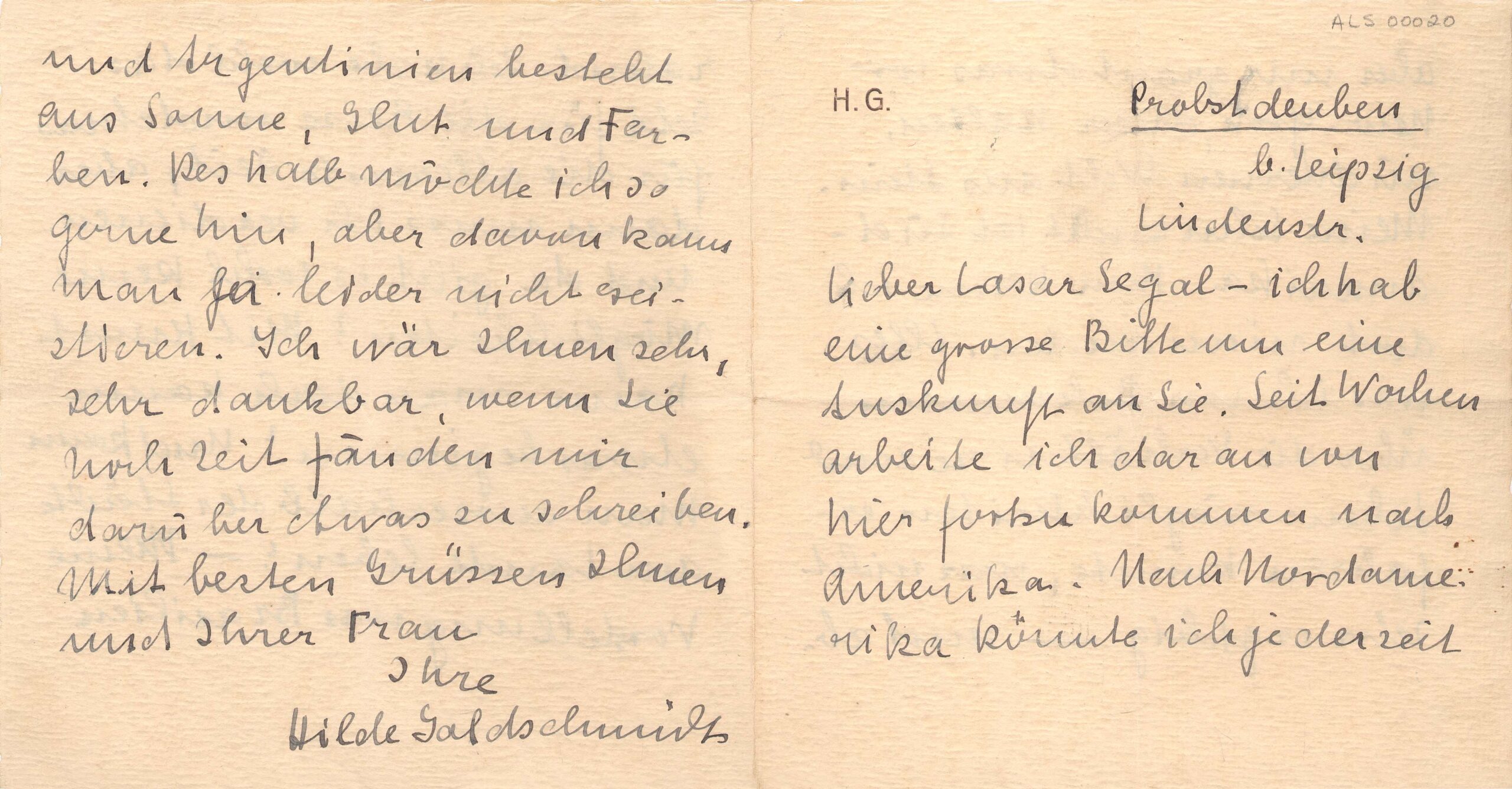 Papel com monograma H. G. ; Cópia xerox: Reserva Técnica, Armário de aço, Gaveta 1, Pasta 1911-1920; local: Probstdeuben bei Leipzig, Lindenstr