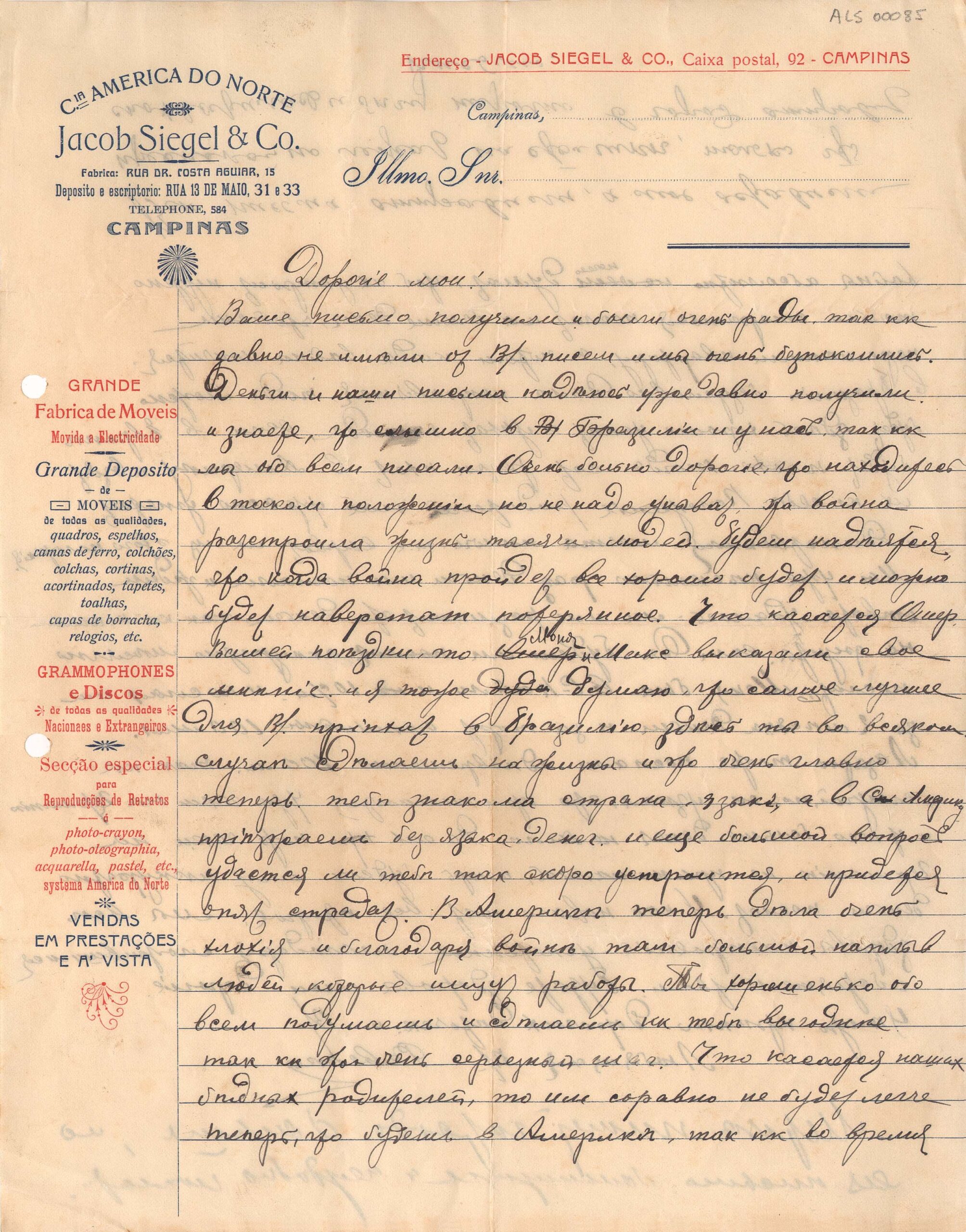 Papel timbrado: Cia America do Norte. Jacob Siegel & Co. Campinas