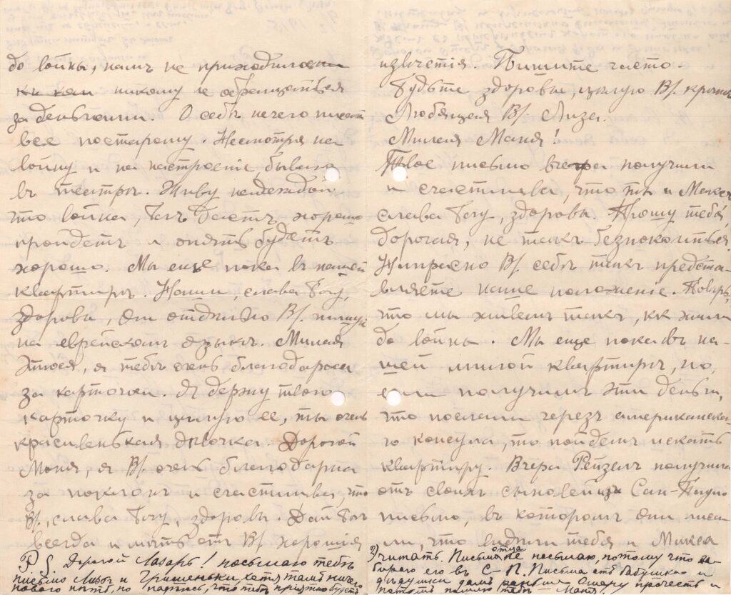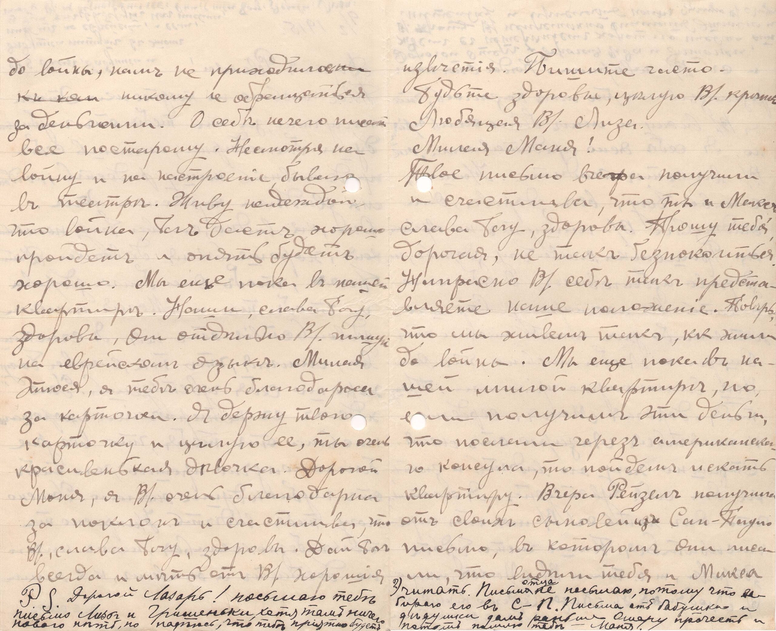 PS assinado por Manja Segall Levin, endereçado a Segall