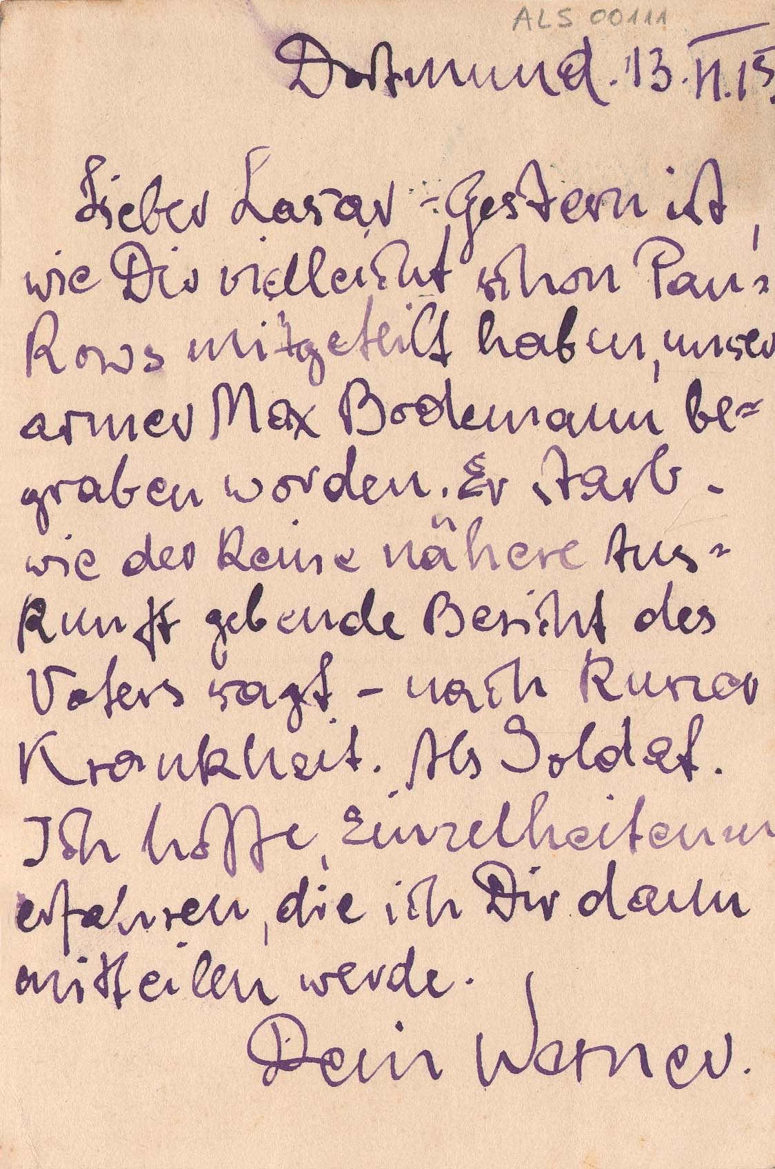 ALS Pasta: Cartas de Werner Schultz 1912 - 1919 [letra JKS]. Pasta interna: "Briefe Werner Schultz"