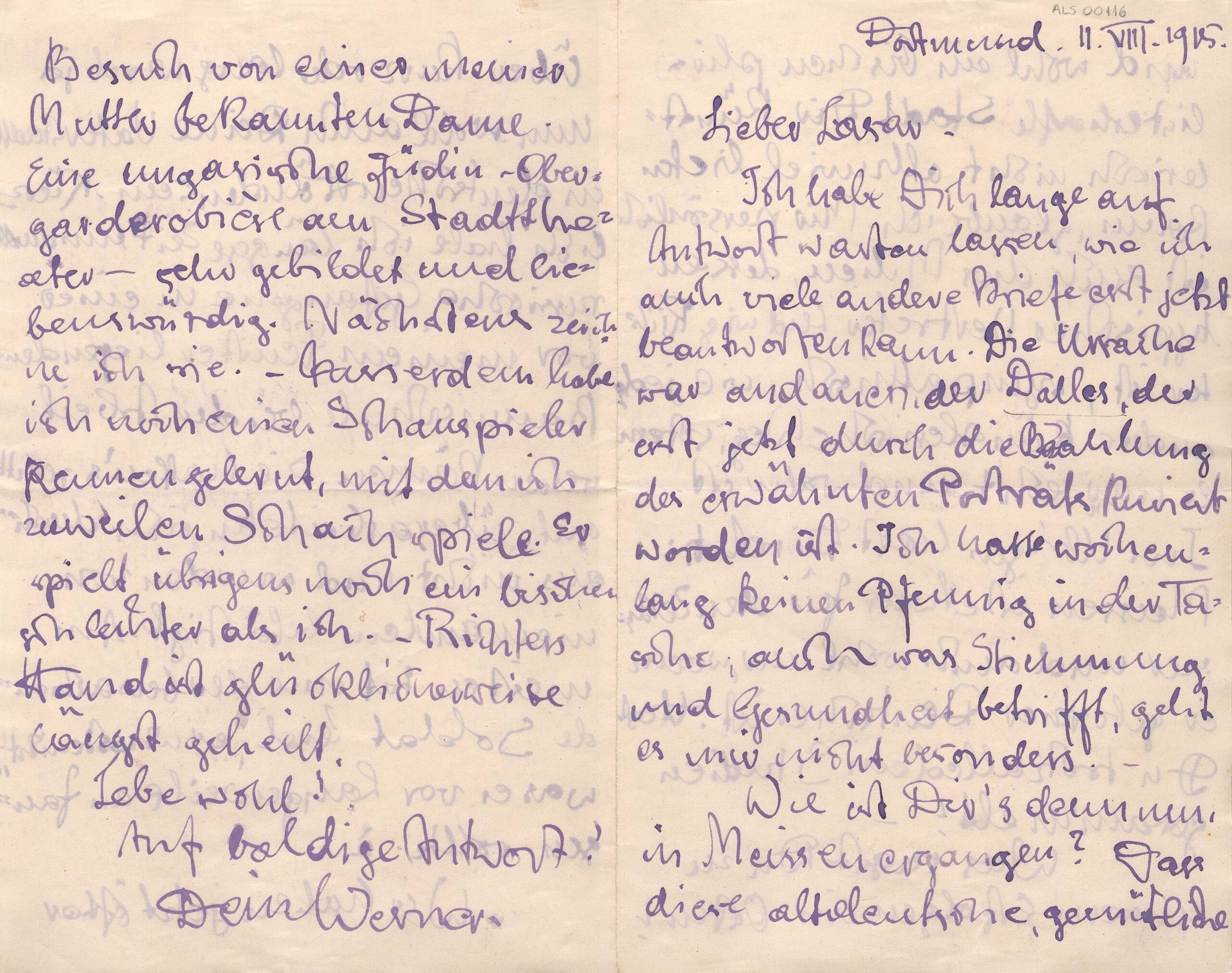 ALS Pasta: Cartas de Werner Schultz 1912 - 1919 [letra JKS]. Pasta interna: "Briefe Werner Schultz"