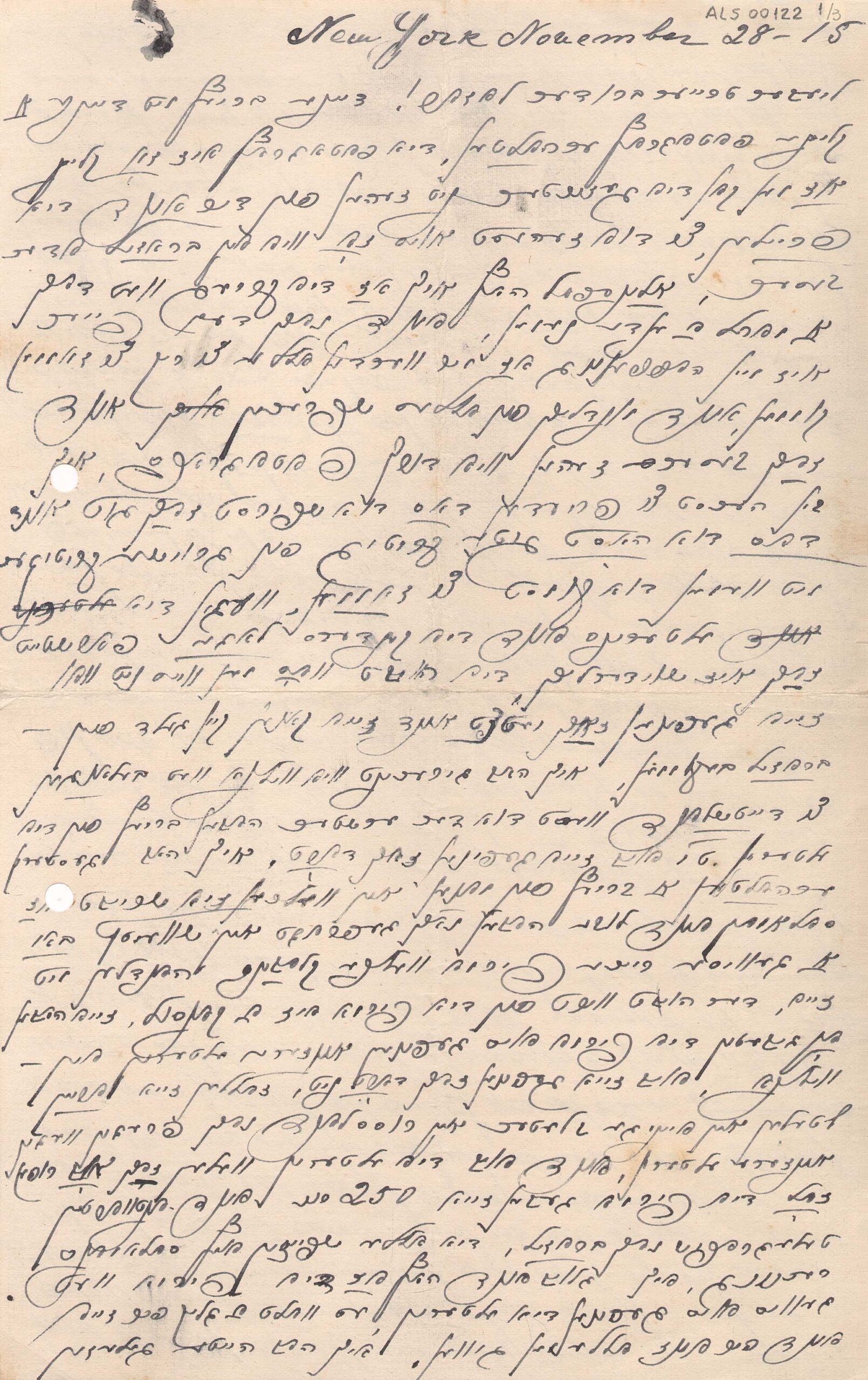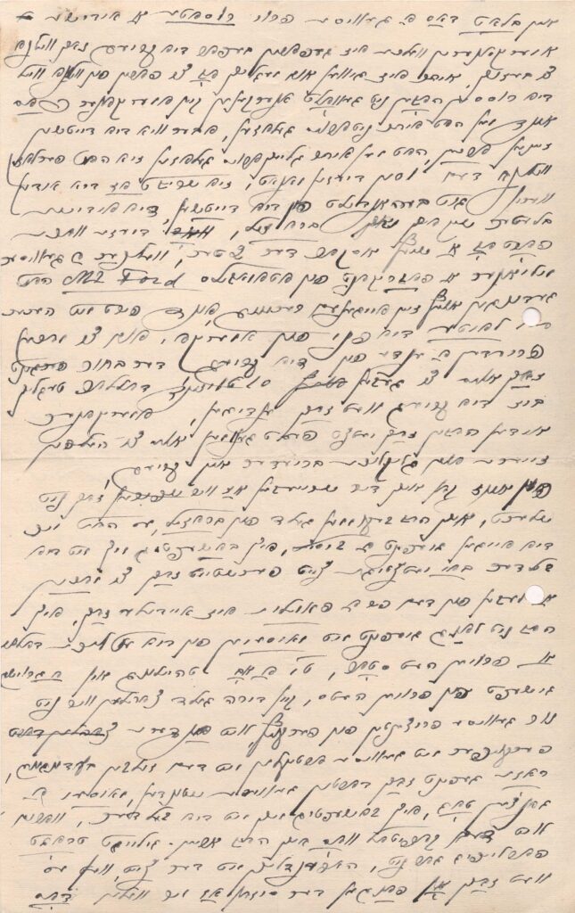 Acusa recebimento de carta de Segall que continha uma pequena fotografia; fica contente em saber que Segall está tendo boas críticas; espera que a guerra tenha um fim próximo, para que possam se falar pessoalmente e trocar notícias; diz-se preocupado com os pais, na Vilna ocupada pelos alemães, pois não sabe o paradeiro deles e eles não podem receber dinheiro; em todo caso, diz que os alemães estão tratando os judeus melhor do que os russos; nessa semana parte o navio Oscar II, alugado pelo milionário americano Henry Ford, para realizar ali uma conferência de paz; fala do contato de Luba e Salomão com judeus influentes, inclusive um milionário americano, empenhados em fazer contribuições vultosas para ajudar os seus "infelizes irmãos" e apressar o fim da guerra; diz que continua a trabalhar com os "quadros", procurando as pessoas em suas casas à noitinha; mandou, por intermédio de uma família que viajou ao Brasil, blusas de lã de presente para os filhos de Oscar e de Luba; tem vontade de voltar ao Brasil, mas não tem condições para isso; percebeu, na escrita de Segall, um certo nervosismo e diz que não adianta ficar tenso, que é necessário deixar a vida caminhar como ela é, embora entenda que é difícil se sentir bem, como se nada estivesse acontecendo