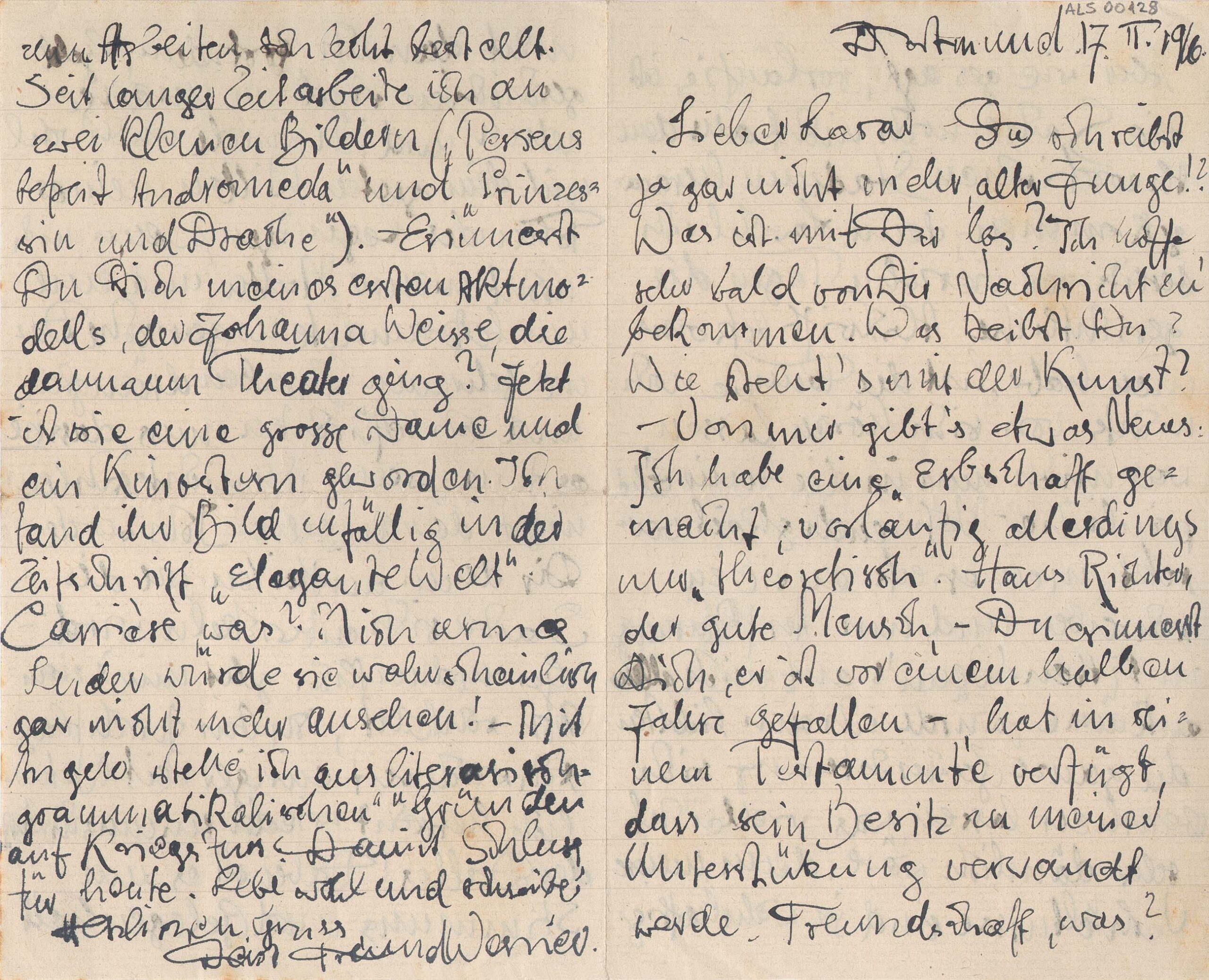 ALS Pasta: Cartas de Werner Schultz 1912 - 1919 [letra JKS]. Pasta interna: "Briefe Werner Schultz"