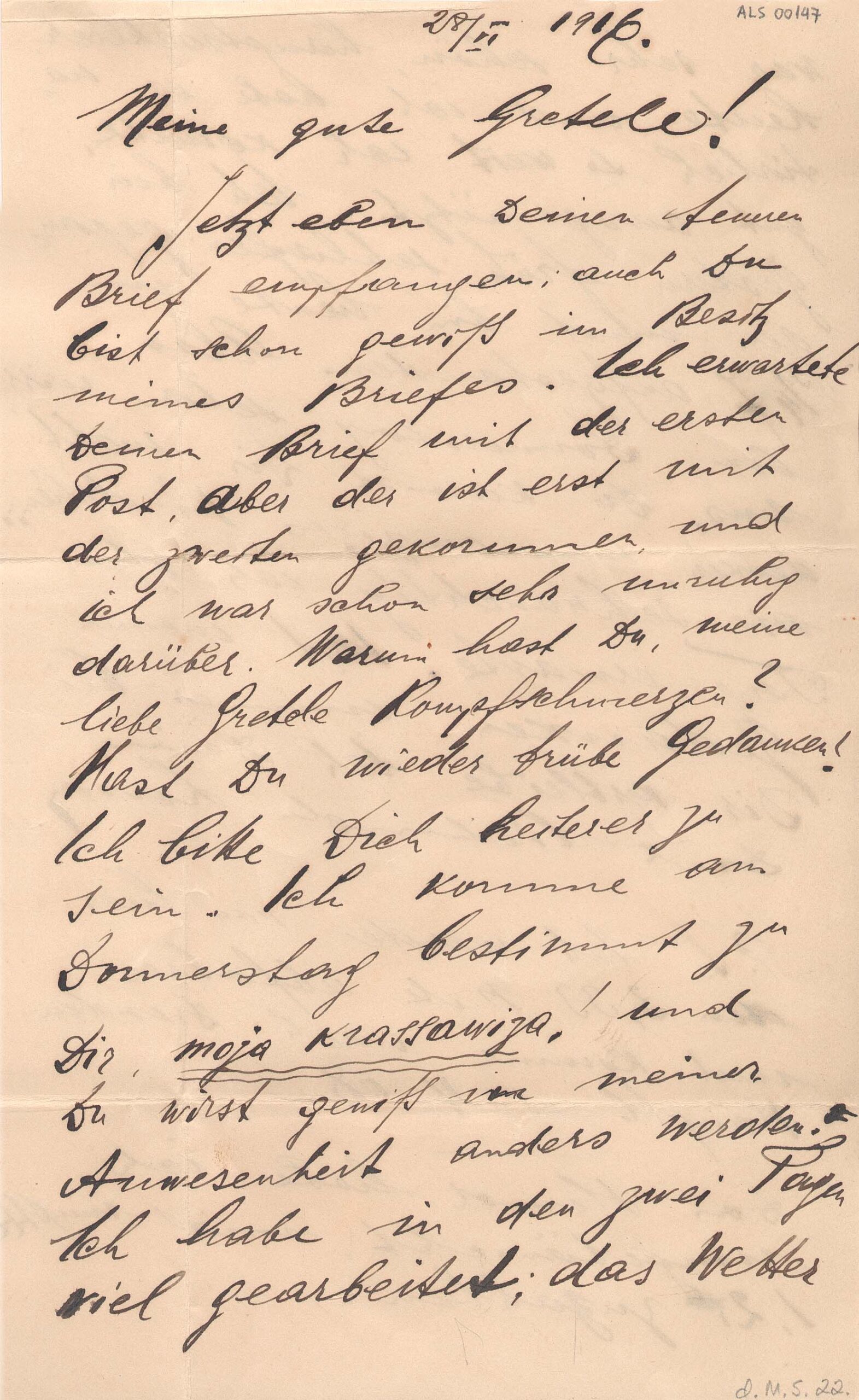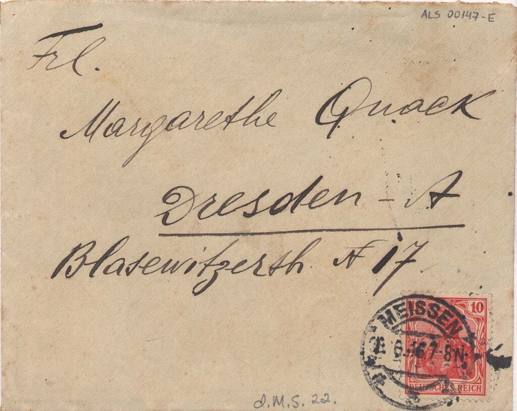ALS Envelope: [Cartas pessoais-íntimas para Margarete Quack 1916-1918] [letra MS]. Doação de Margarete Suhr [letra Vera d'Horta]