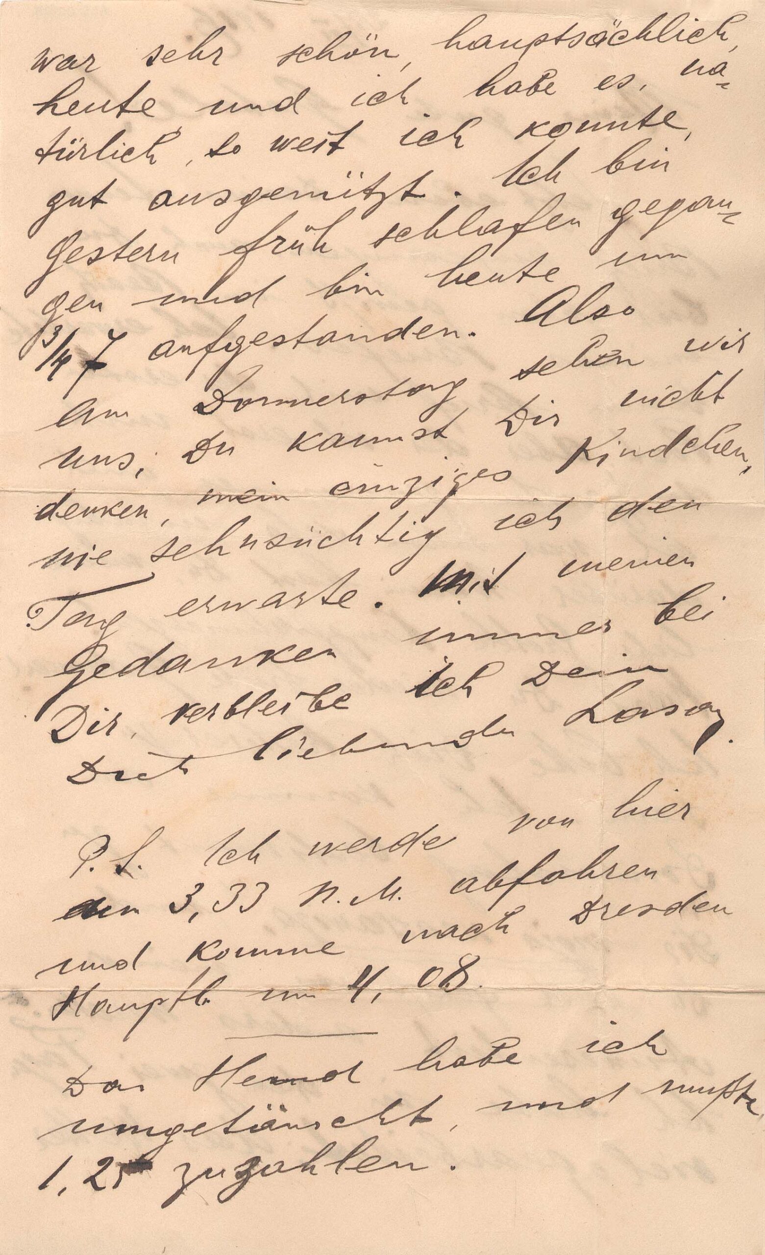Lasar Segall informa ter trabalhado bastante nos últimos dias, aproveitando o bom clima; avisa da sua chegada próxima a Dresden, informando os horários de partida e chegada