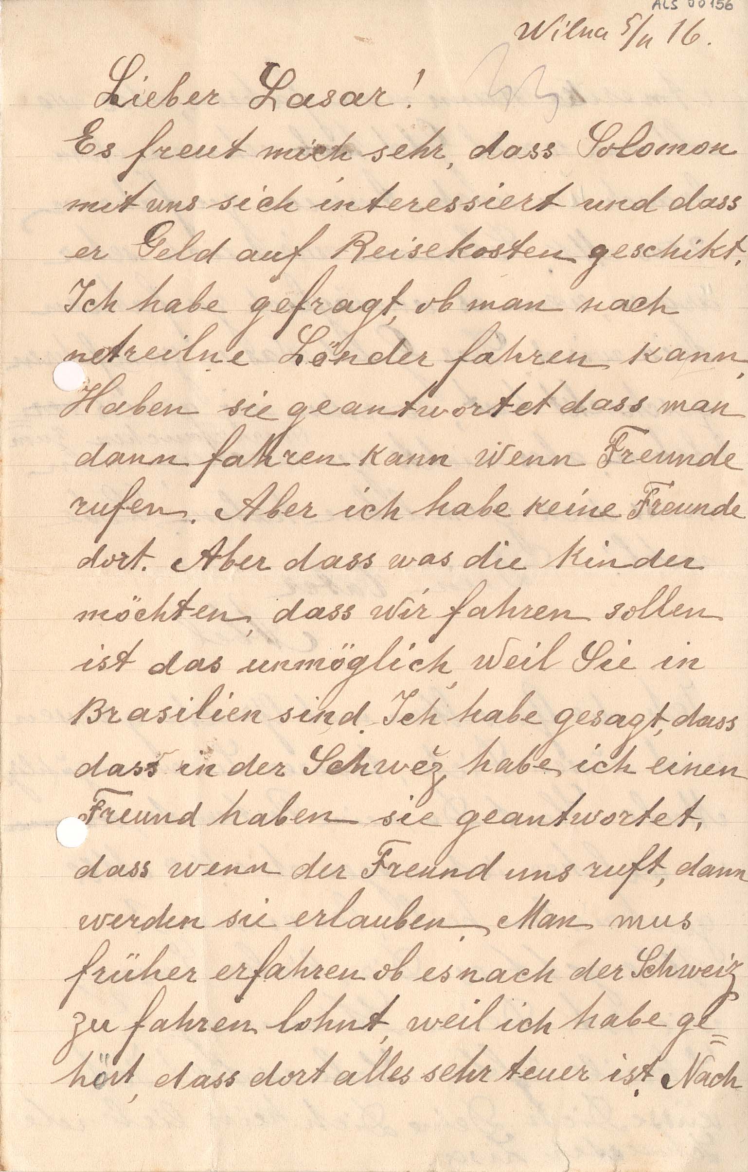 ALS Pasta: "FamilienKorrespondenz 1913 bis Mitte 1923". Bilhete aposto: Correspondência revista por LS 1913-1923 [letra FF]
