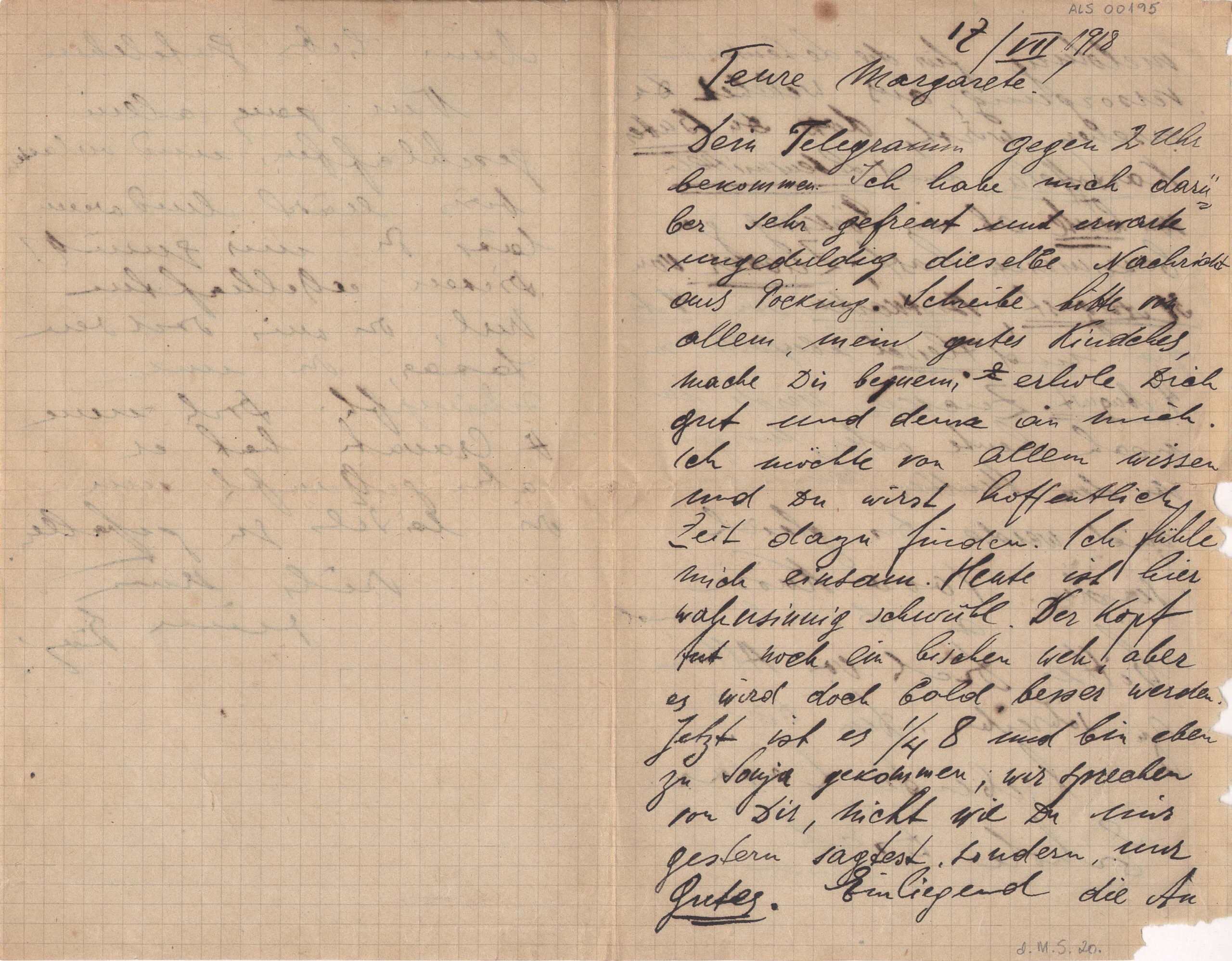 ALS Envelope: [Cartas pessoais-íntimas para Margarete Quack 1916-1918] [letra MS]. Doação de Margarete Suhr [letra Vera d'Horta]