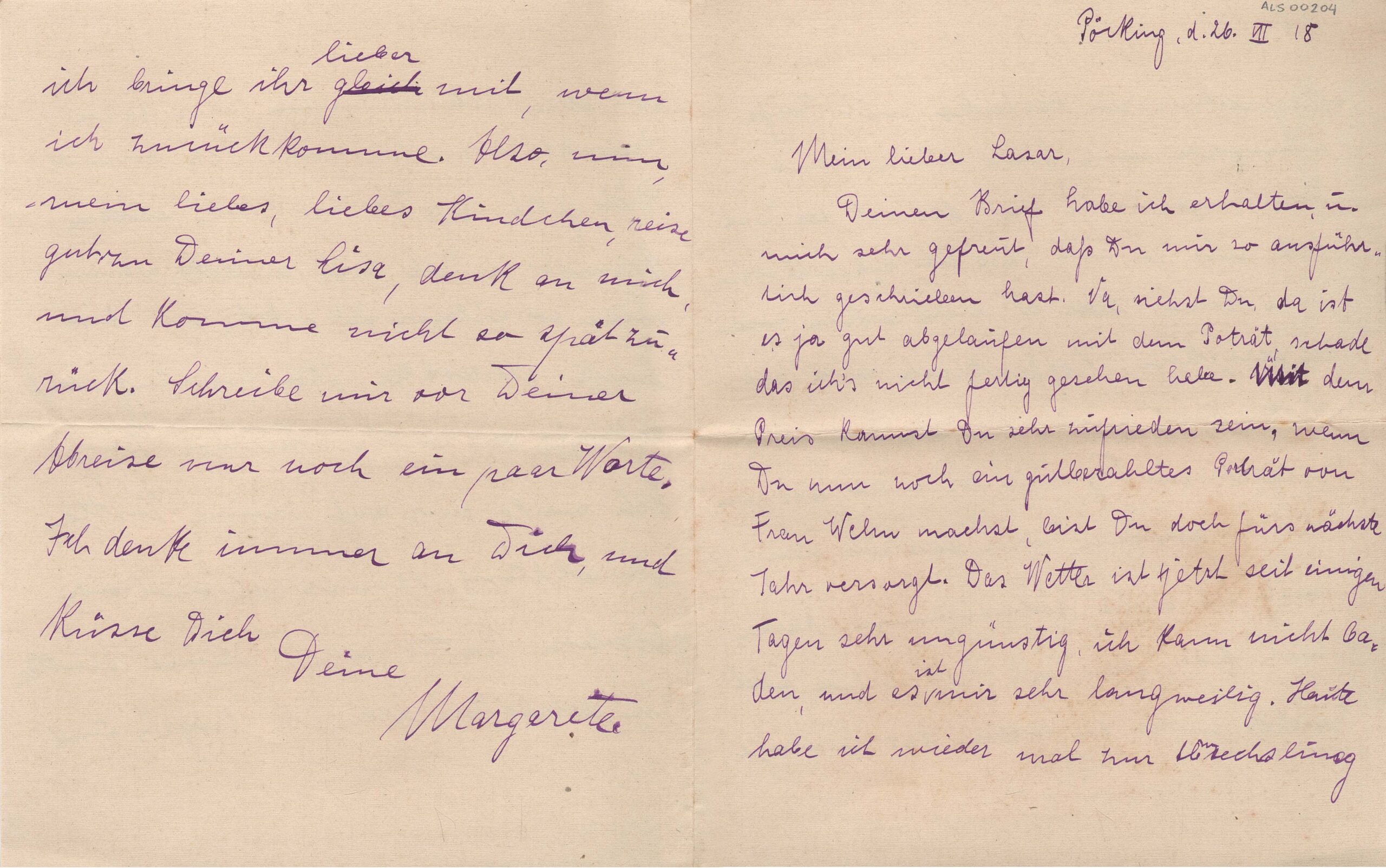 ALS Envelope: Bilhete aposto: Briefe [letra JKS]. Envelope interno: Tarja: "Von Margarete"