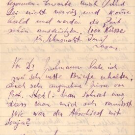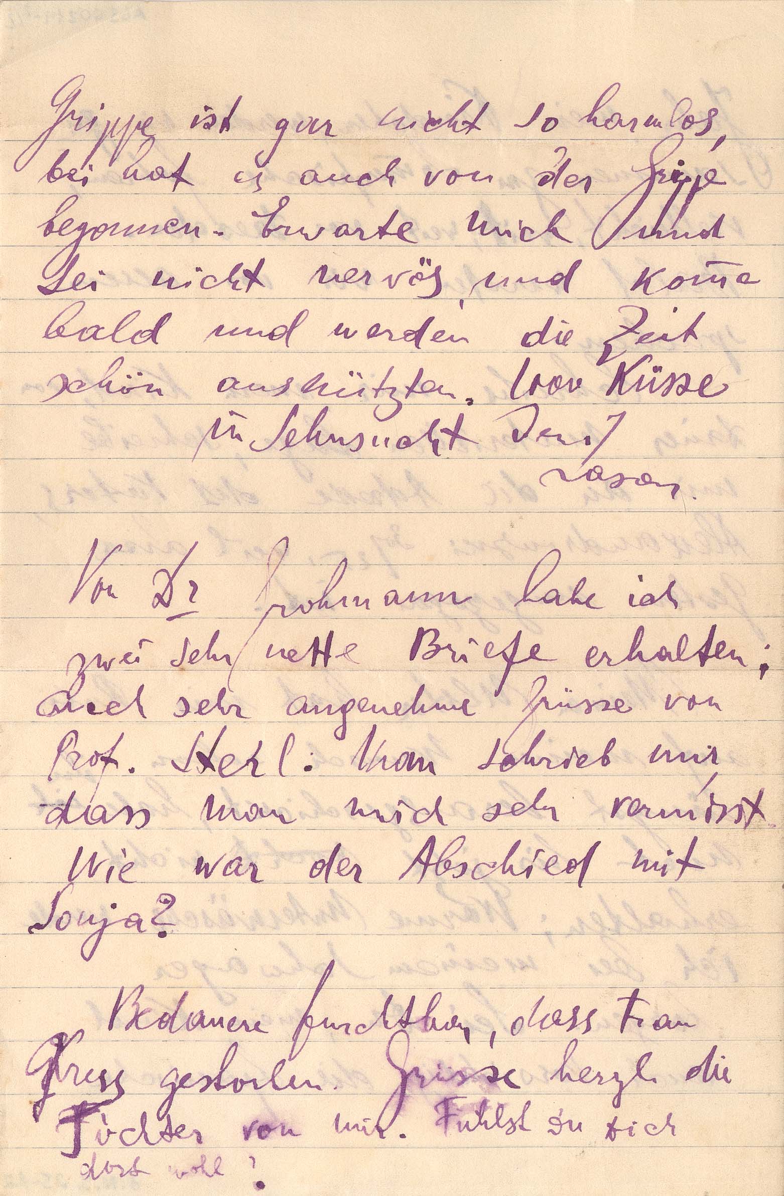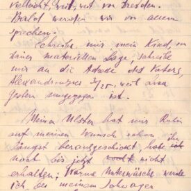 Fala que está doente, com gripe espanhola, há mais de quatro semanas; pede que Margarete escreva para o endereço do pai, Alexandrowski 30-25, Vilna