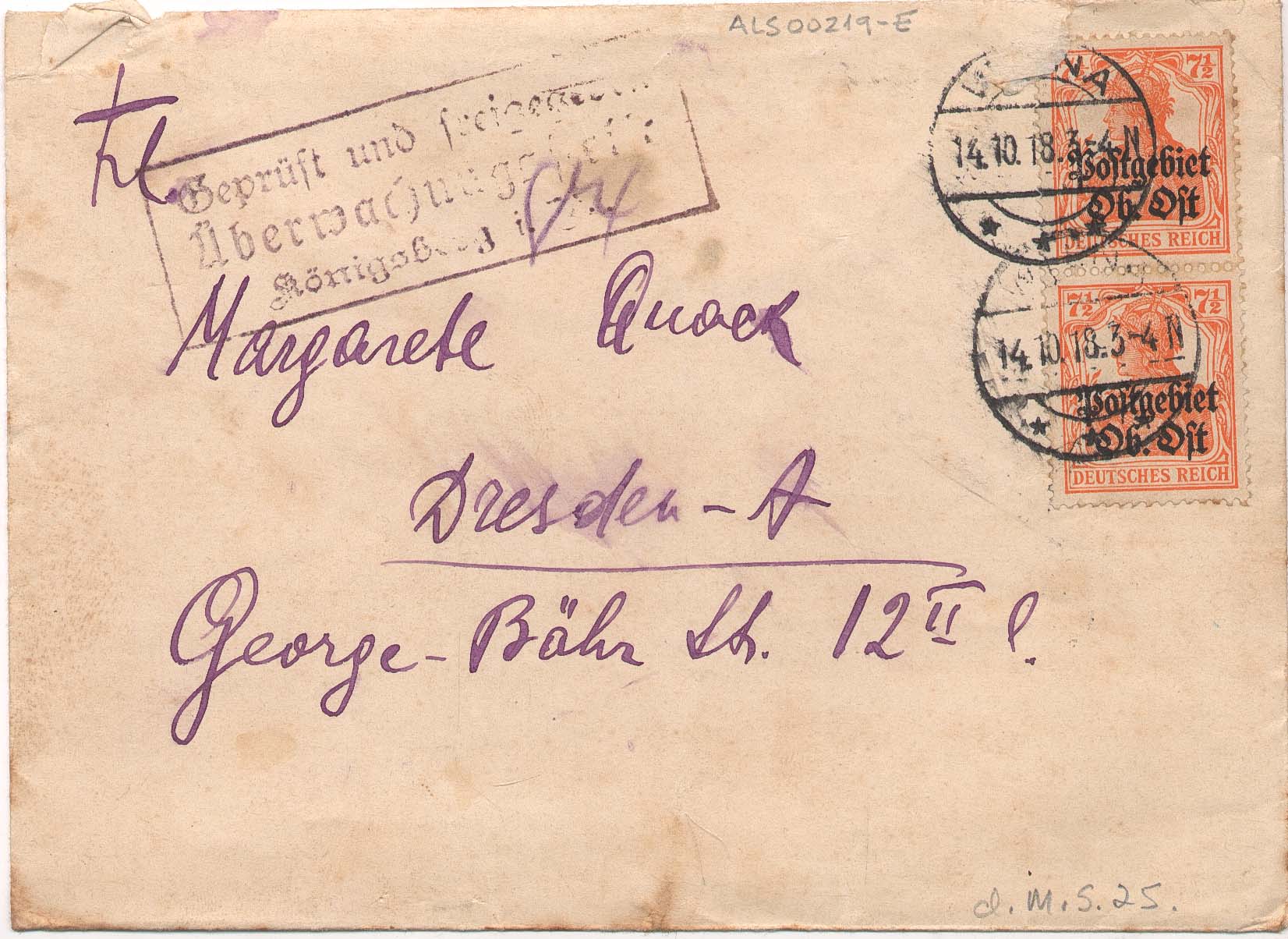 ALS Envelope: [Cartas pessoais-íntimas para Margarete Quack 1916-1918] [letra MS]. Doação de Margarete Suhr [letra Vera d'Horta]