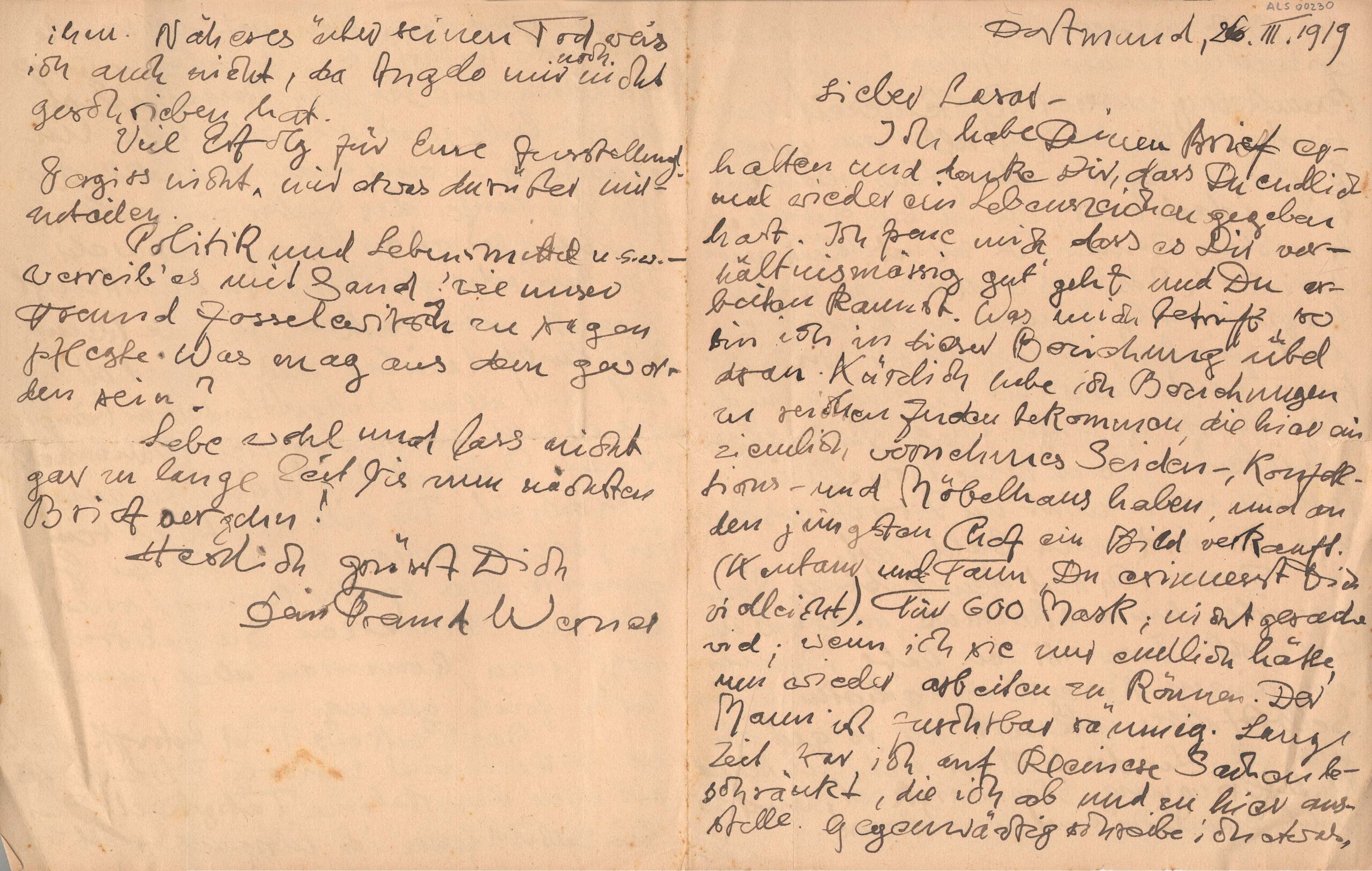 ALS Pasta: Cartas de Werner Schultz 1912 - 1919 [letra JKS]. Pasta interna: "Briefe Werner Schultz"