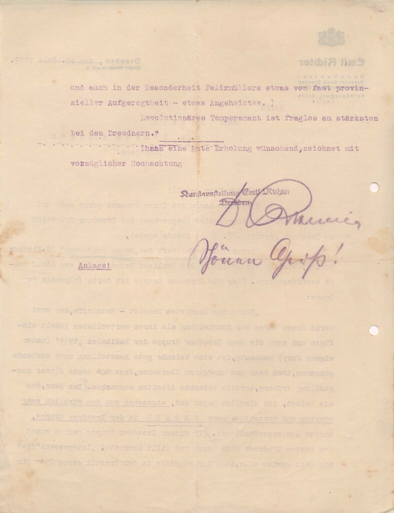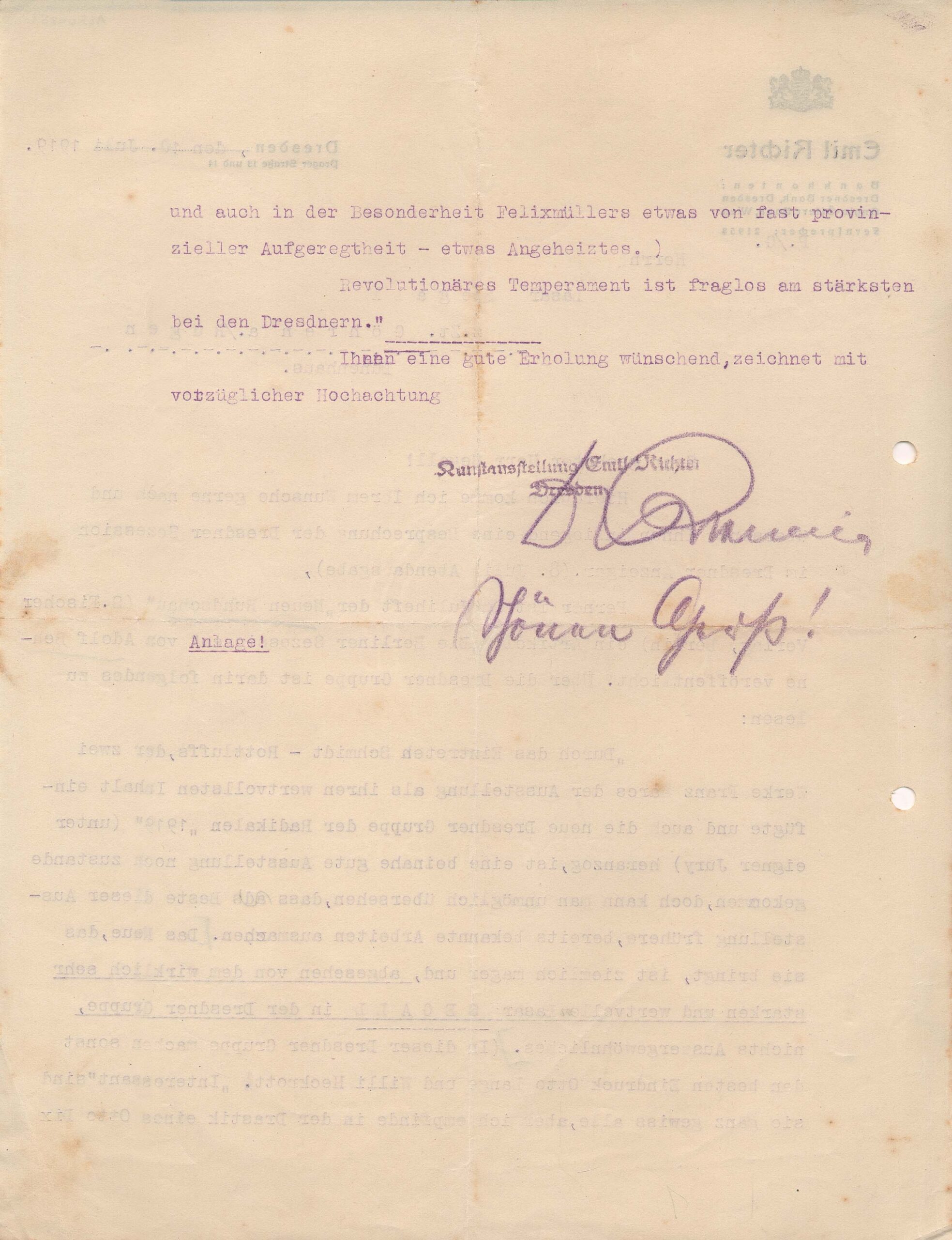 Assinatura não identificada. Papel timbrado "Emil Richter". Trechos sublinhados a lápis, provavelmente por Segall. Local: Zt. Göhren a.-Rügen