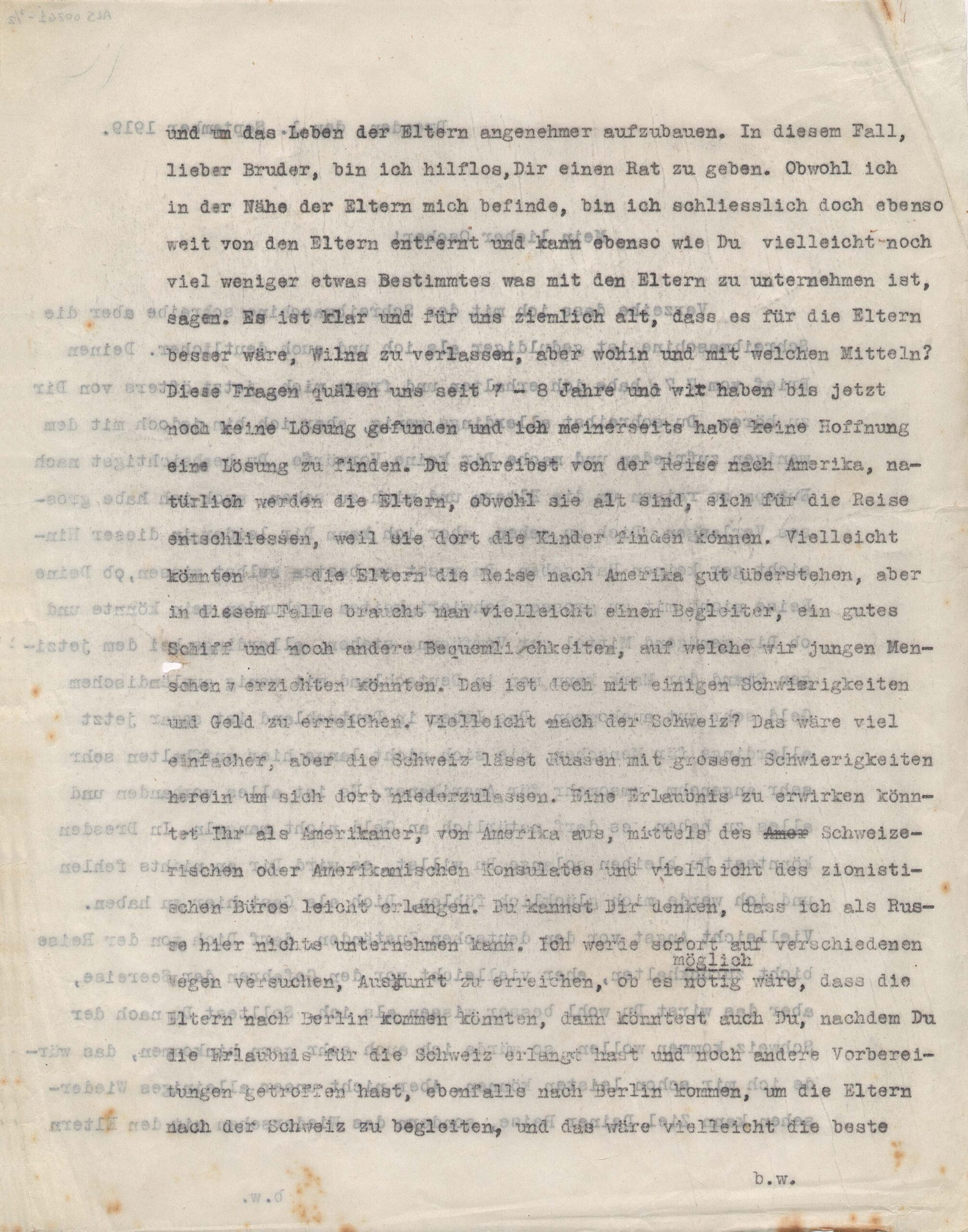Ao final da primeira e da segunda páginas, estão escritas as iniciais "b.w."