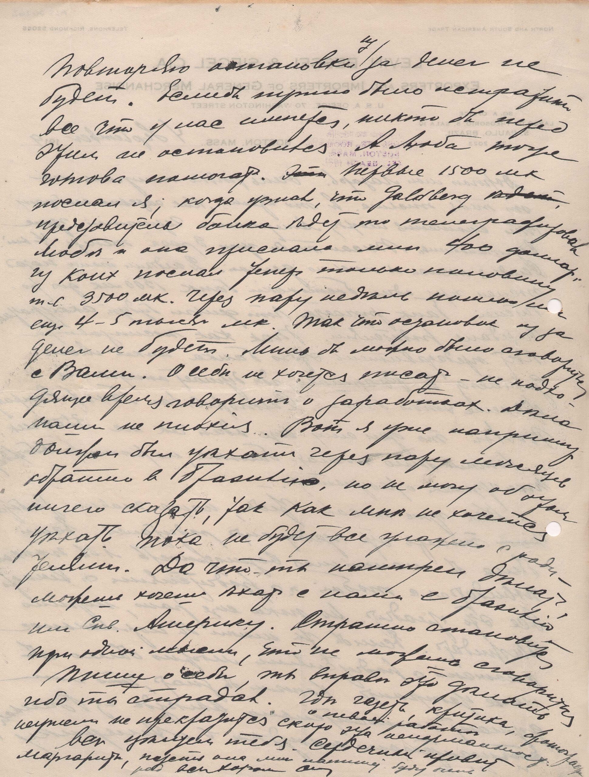 Papel timbrado: "Levin, Bessel & Siegel Cia. Exporters and Importers of General Merchandise"; carimbo: " Moved to 114-116 Bedford Str. Room 502 Boston, Mass. Tel. Beach 1621"