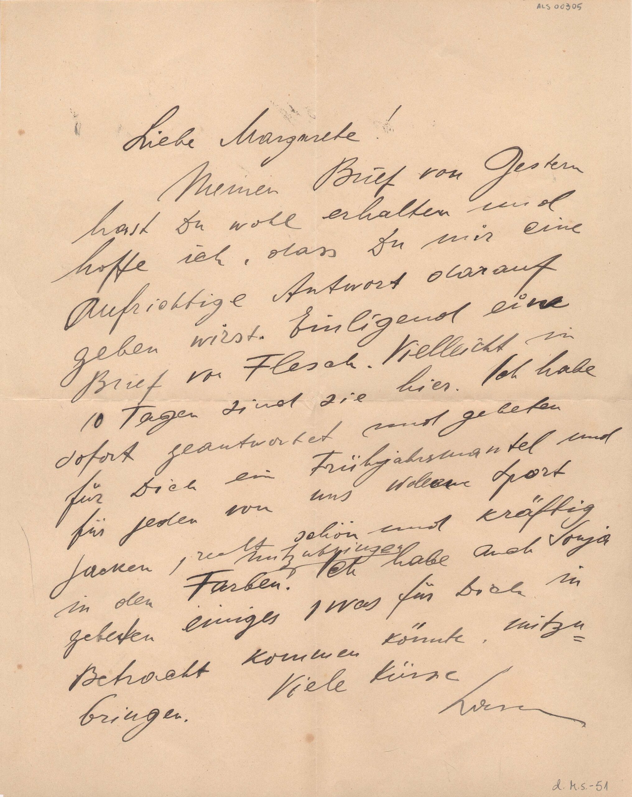 Acompanha envelope, endereçado a Frl. Margarete Schütz. Endereço do remetente, Dresden A. Nürnbergerst, 57