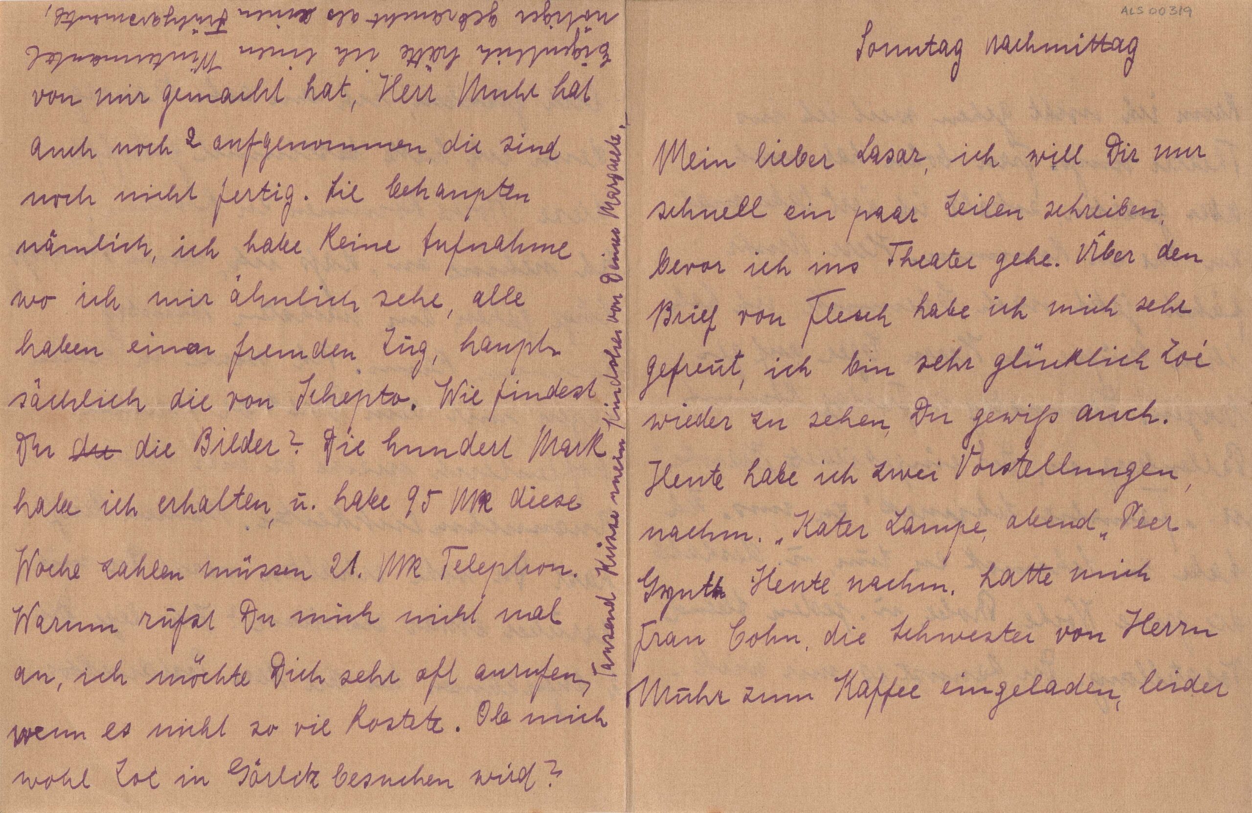 Sem data, anotado: "Sonntag nachmittag" [domingo à tarde]