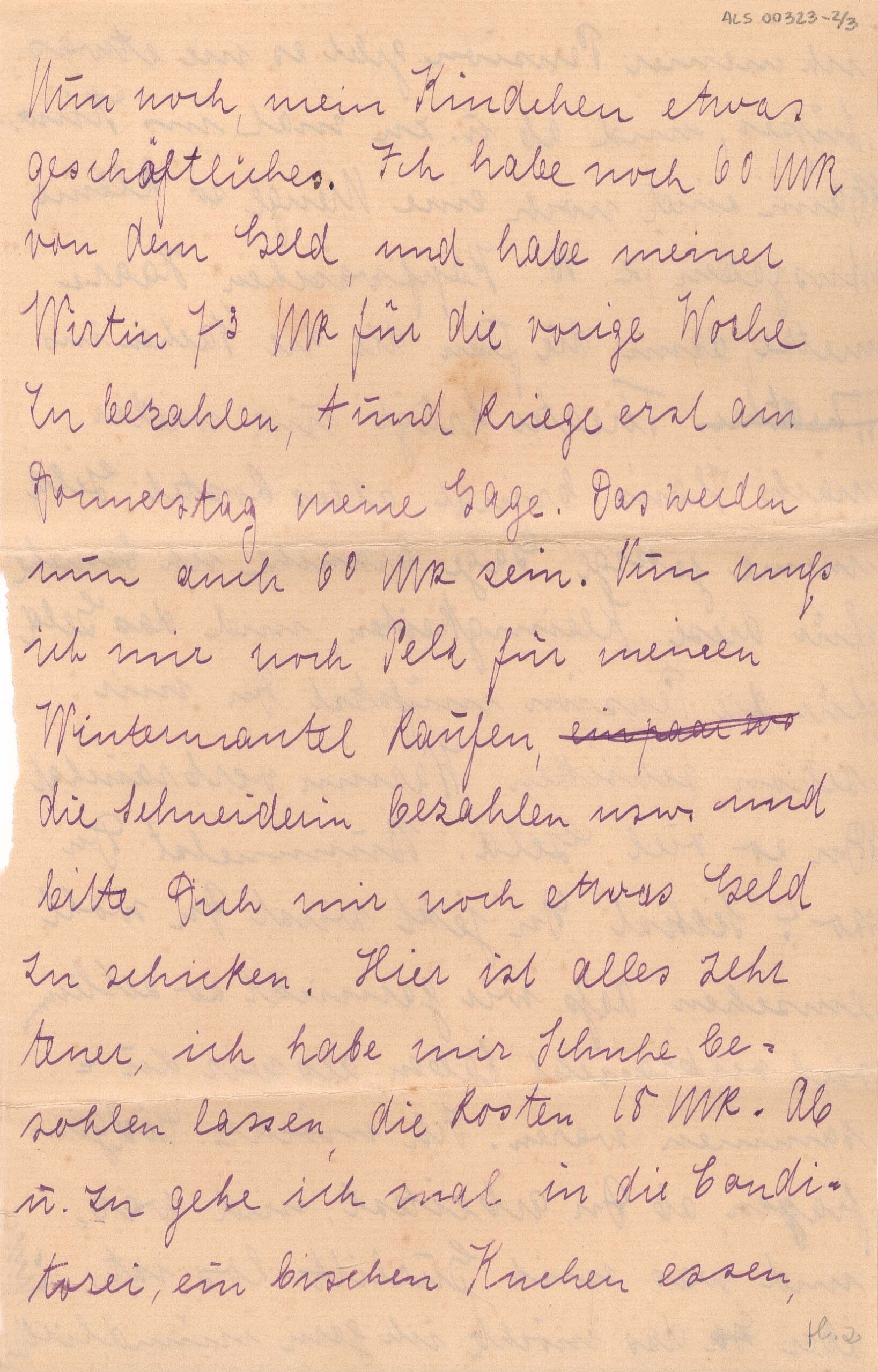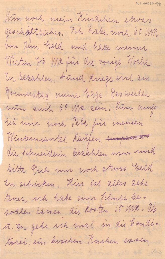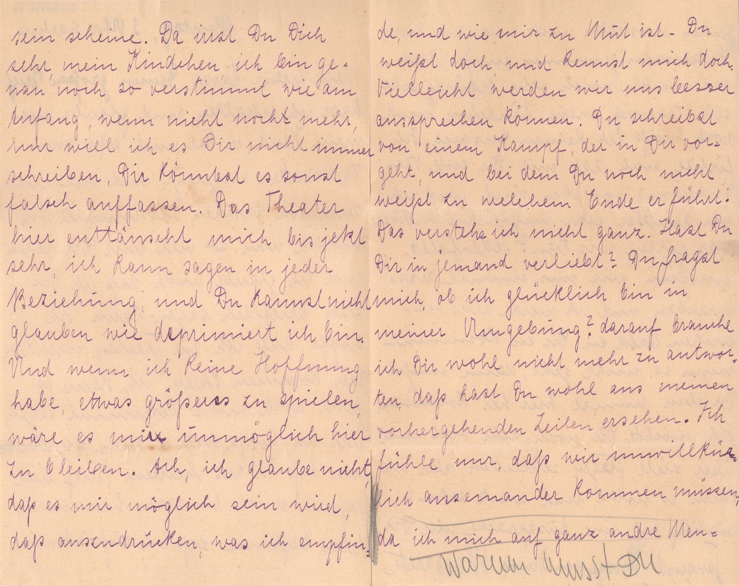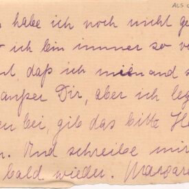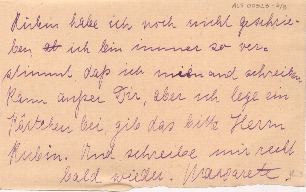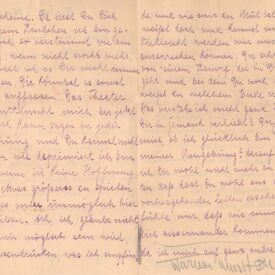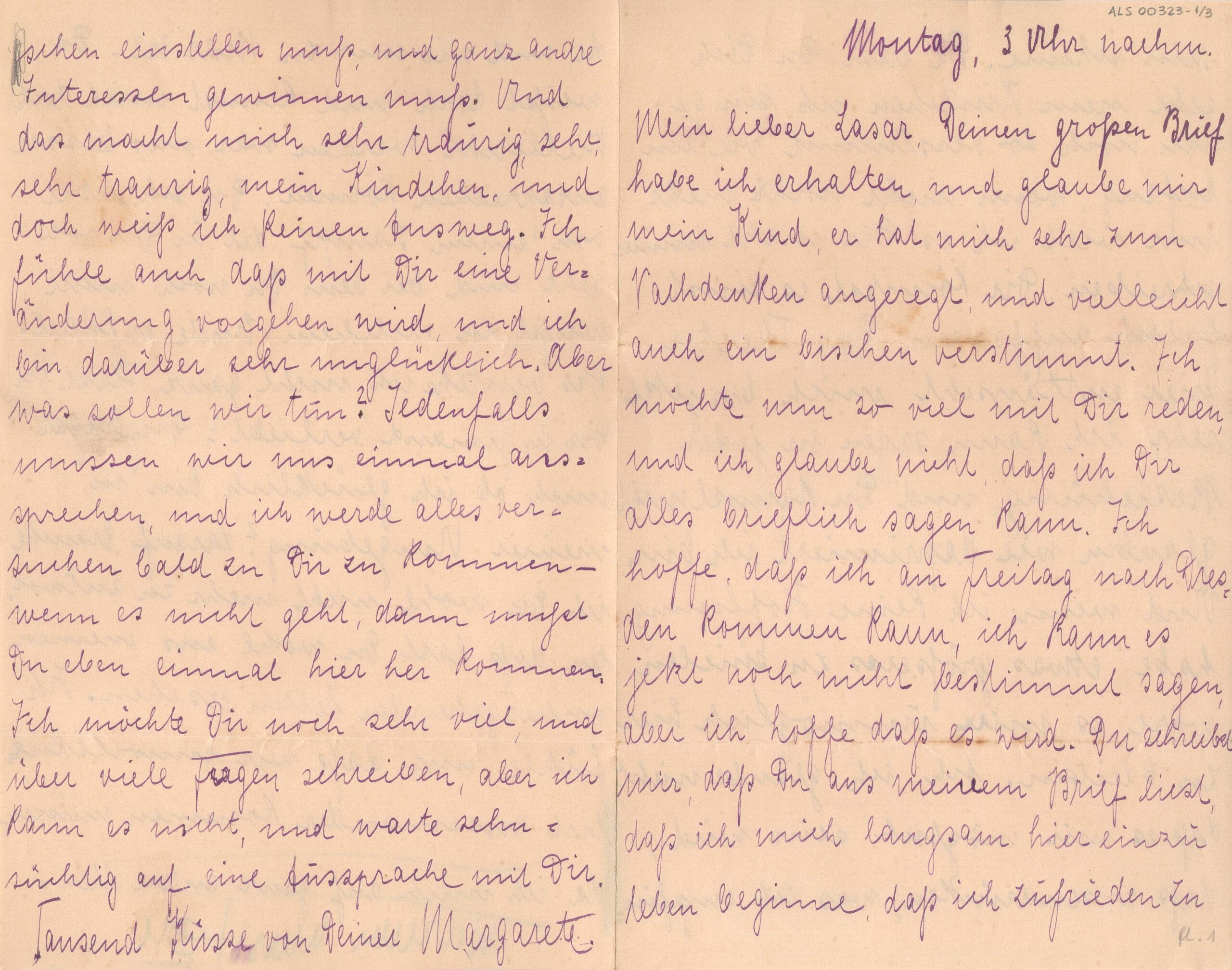 Sem data, anotado: "Montag, 3 Uhr Nachm." [Segunda feira, 3 da tarde]; anotação a grafite por Segall, no verso da folha 1: "Warum musst Du" [porque você precisa"