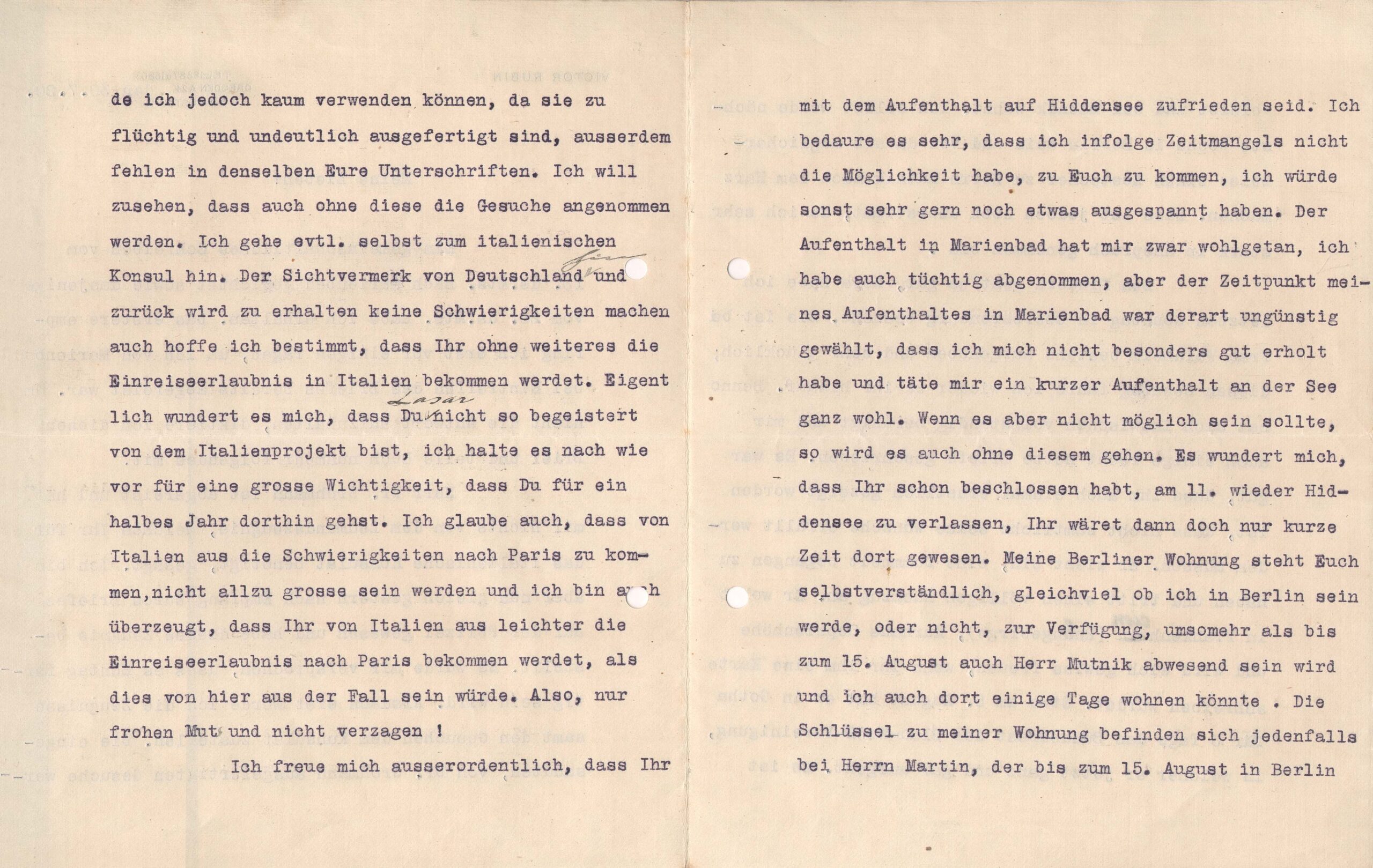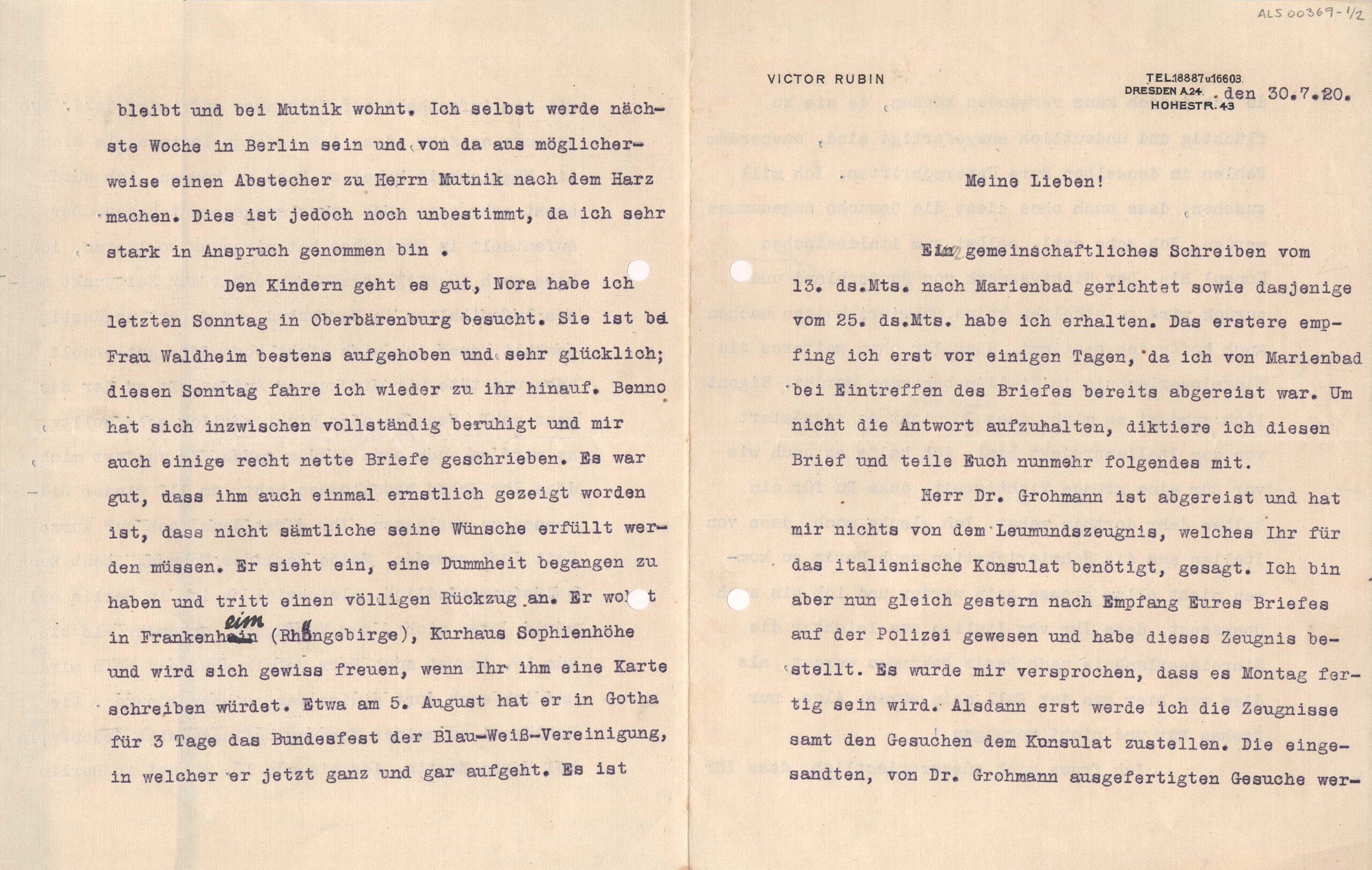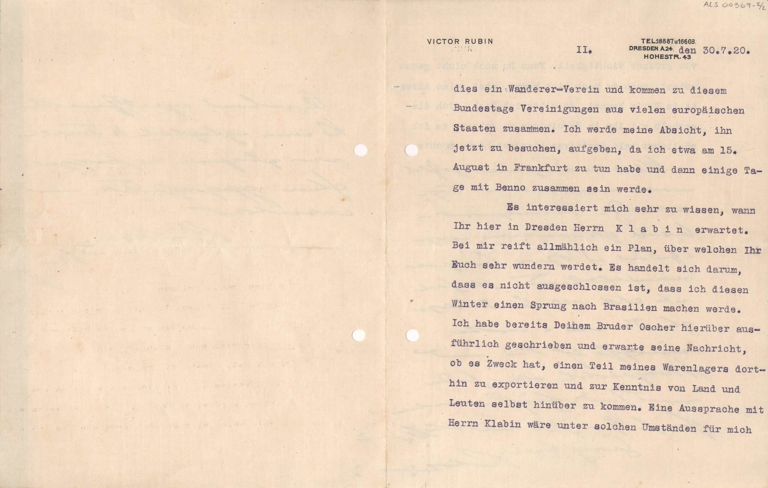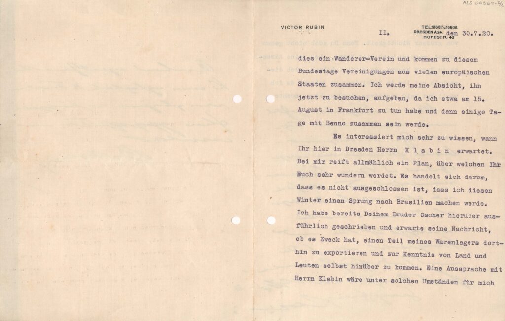 Papel timbrado: "Victor Rubin, Tel 18887u16603-Dresden A 24, Hohestr.43"