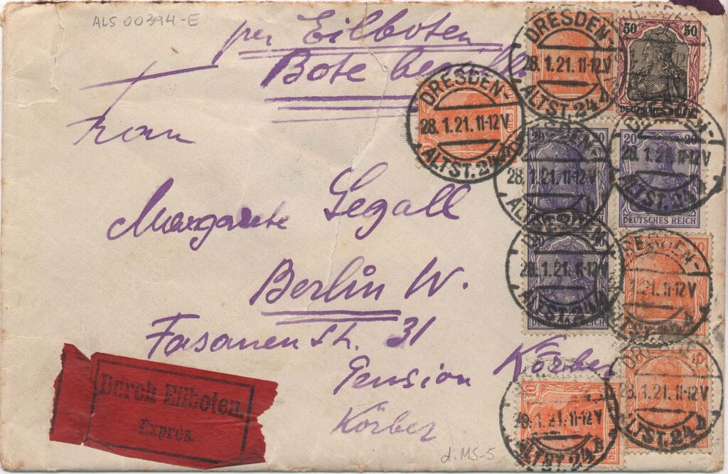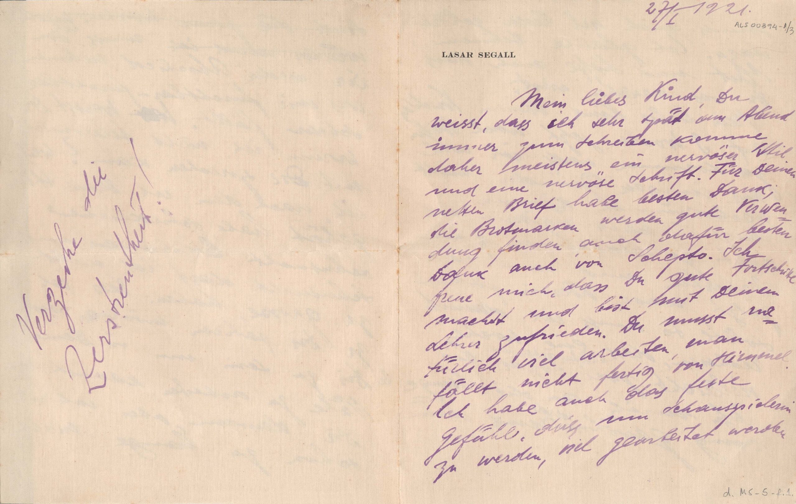 ALS Envelope: (Cartas de Segall para Margarete - 1921). Doação Margarete Suhr. [letra Vera dHorta]