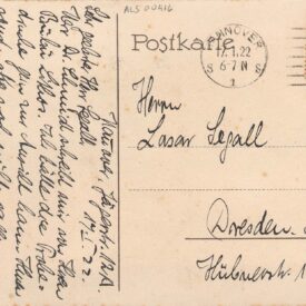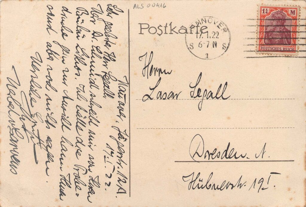 Na frente do cartão, imagem de cavalo em sumiê; tinha, originalmente, o nº 320 da listagem da exposição ALS Signos de uma vida; endereço de von Garvens: "Hannover, Jägerstr. 12 A "