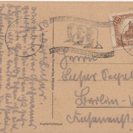 Na frente, fotografia da igreja Frauenkirche, de Munique, por H. Wutz, Kunstverlag, München; no verso, havia a grafite o nº 434 da listagem da exposição "Signos de uma vida"