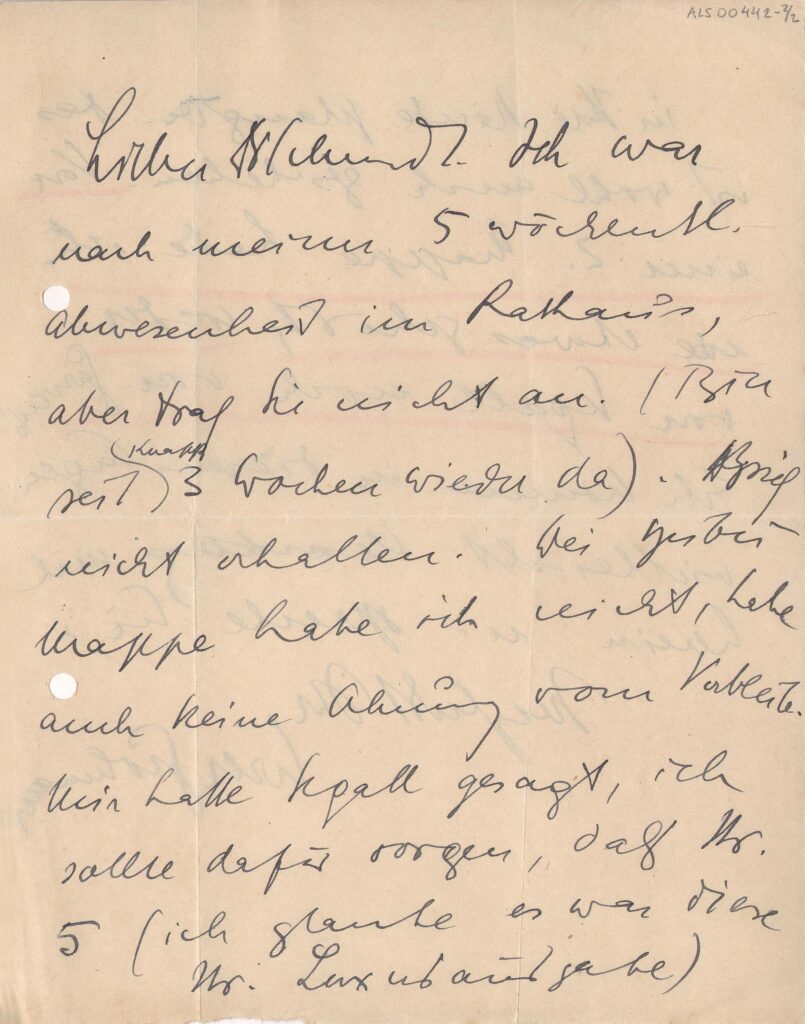 ALS Pasta: "Privatkorrespondenz 1922 - 26". Bilhete aposto: Correspondência revista por L. S. 1922 - 1926