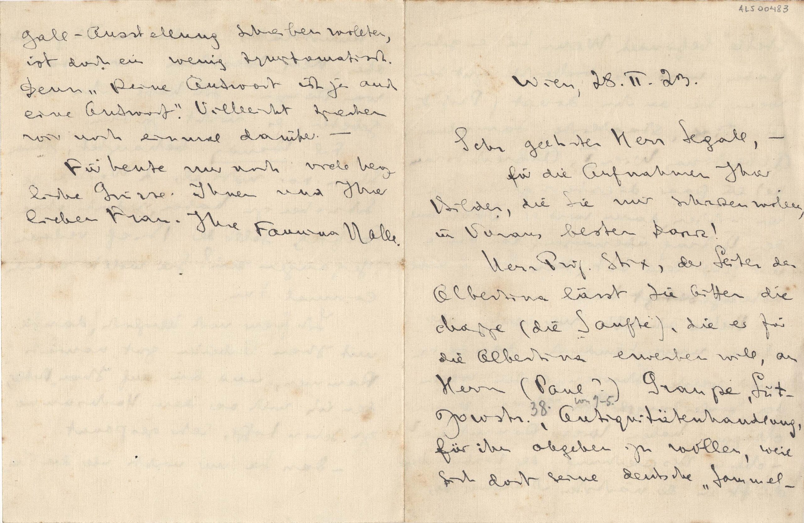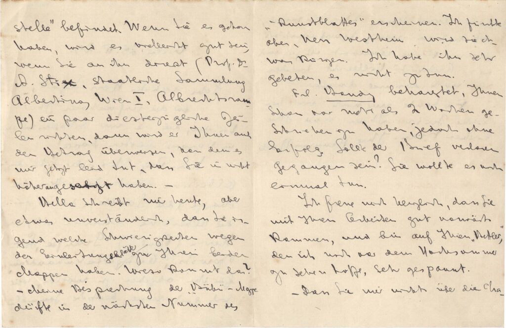 Contato manifestando interesse, por parte do prof. Alfred Stix, de obter gravuras de Segall para a coleção do Museu Albertina, de Viena