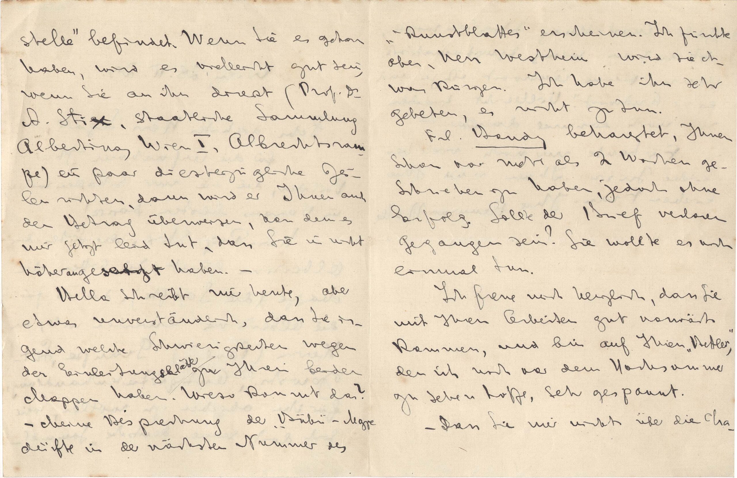 Contato manifestando interesse, por parte do prof. Alfred Stix, de obter gravuras de Segall para a coleção do Museu Albertina, de Viena