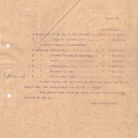 Segall informa que preparou, para a Galerie Fischer, um pacote com águas-fortes e xilogravuras suas; lista as gravuras e seus respectivos preços de venda