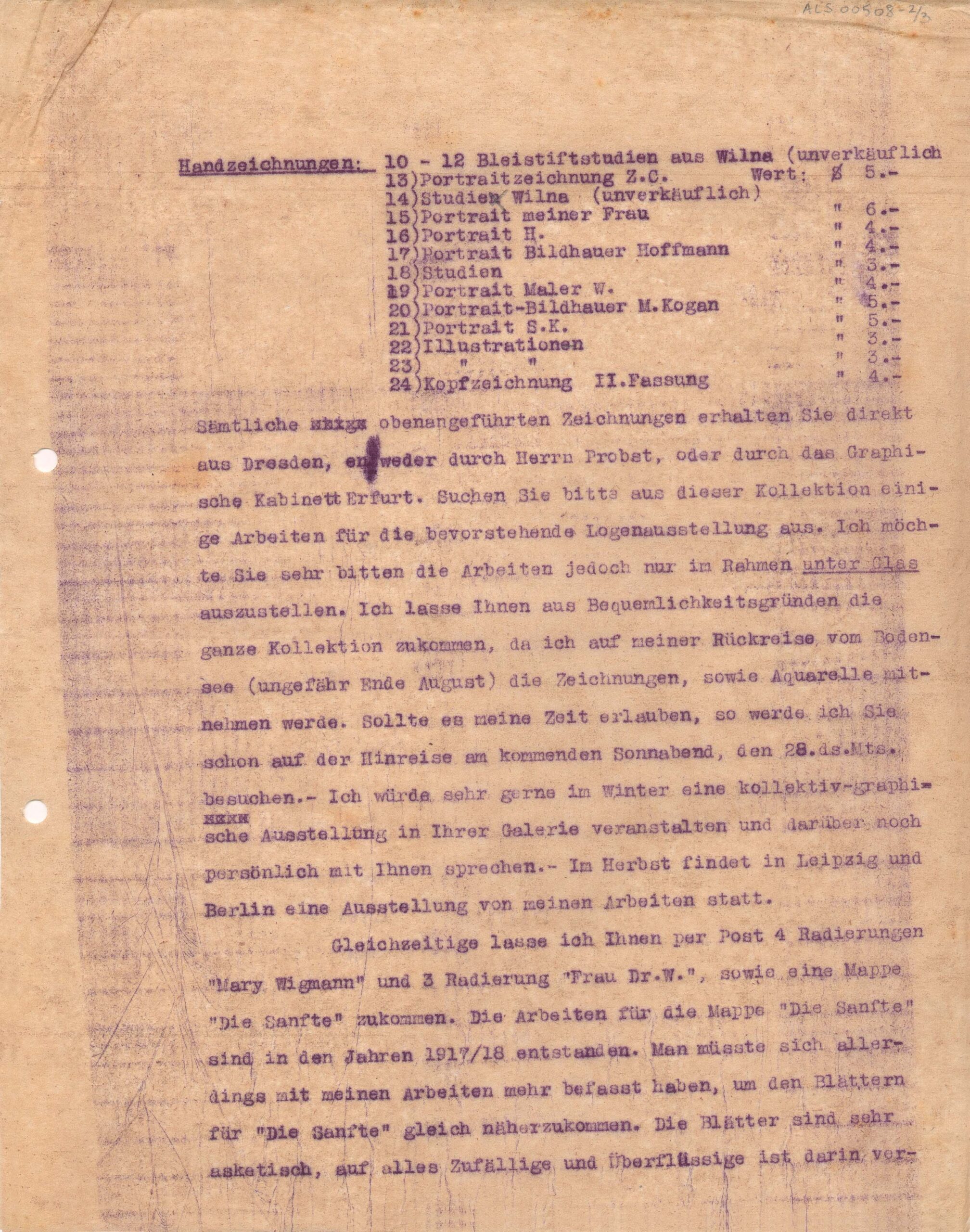 ALS 00508administrator12 de maio de 2025 Home Acervo Documental ALS 00508 20160216175858904_ALS-00508_98_ITEM_OR-1_508_98 Baixar 2016021617254767_ALS-00508_3_ITEM_OR-1_508_3 Baixar 2016021618302554_ALS-00508_33_ITEM_OR-1_508_33 Baixar 20160216175858904_ALS-00508_98_ITEM_OR-1_508_98 2016021617254767_ALS-00508_3_ITEM_OR-1_508_3 2016021618302554_ALS-00508_33_ITEM_OR-1_508_33 Mídiahttps://lasar-segall-2.s3.amazonaws.com/20160216175858904_ALS 00508_98_ITEM_OR-1_508_98 | https://lasar-segall-2.s3.amazonaws.com/2016021618302554_ALS 00508_33_ITEM_OR-1_508_33 | https://lasar-segall-2.s3.amazonaws.com/2016021617254767_ALS 00508_3_ITEM_OR-1_508_3Nome do arquivoals00508cf001.jpg | als00508cf002.jpg | als00508cf003.jpgPrincipalTrue||False||FalseResponsável nomeLasar Segall tipoAutoria localEuropa>>Alemanha>>Berlim públicoTrue | nomeGalerie Fischer tipoReceptor localEuropa>>Alemanha>>Frankfurt públicoTrue Observações geraisCópia xerox: Reserva Técnica, Armário de aço, Gaveta 1, Pasta 1921-1924Localização atualReserva Técnica Armário Deslizante 1 Pasta Jul. 1923Técnica de registro/confecçãoDatiloscrito cópia carbonoNívelCorrespondênciaSérie/documentoCartaData final1923-07-25Data atribuída?falseHistórico Tipo de históricoHistórico de preenchimento Descrição do históricoStella Ramos Santos; fevereiro 2006 Data do histórico2006-02-XX Responsável pelo preenchimento do históricoStella Ramos Santos Item anteriorALS 00507 Próximo itemALS 00509