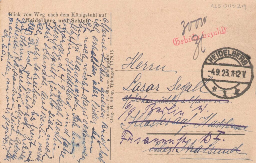 ALS 00529administrator12 de maio de 2025 Home Acervo Documental ALS 00529 20160216175320374_ALS-00529_67_ITEM_OR-1_529_67 Baixar 20160216175619510_ALS-00529_44_ITEM_OR-1_529_44 Baixar 20160216175320374_ALS-00529_67_ITEM_OR-1_529_67 20160216175619510_ALS-00529_44_ITEM_OR-1_529_44 Mídiahttps://lasar-segall-2.s3.amazonaws.com/20160216175320374_ALS 00529_67_ITEM_OR-1_529_67 | https://lasar-segall-2.s3.amazonaws.com/20160216175619510_ALS 00529_44_ITEM_OR-1_529_44Nome do arquivoals00529cf001.jpg | als00529cf002.jpgPrincipalTrue||FalseResponsável nomeLuba Segall Klabin tipoAutoria localEuropa>>Alemanha>>Heidelberg públicoTrue | nomeLasar Segall tipoReceptor localEuropa>>Alemanha>>Berlim públicoTrue Localização atualReserva Técnica Armário Deslizante 1 Pasta Set. 1923NívelCorrespondênciaSérie/documentoCartão PostalData final1923-09-04Data atribuída?falseInscrições inscriçãoLuba Histórico Tipo de históricoHistórico de preenchimento Descrição do históricoStella Ramos Santos; fevereiro 2006 Data do histórico2006-02-XX Responsável pelo preenchimento do históricoStella Ramos Santos Item anteriorALS 00527 Próximo itemALS 00530