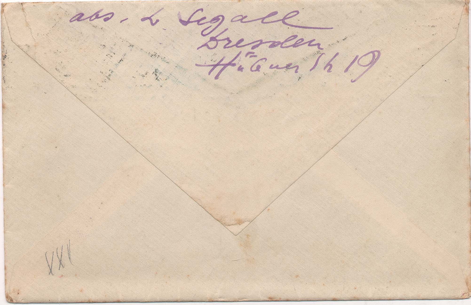 ALS Envelope: [Correspondência Lasar Segall x Margarete] [c. 1917-19] [letra MS]. [Doação de Margarete Suhr] [letra Vera d'Horta]