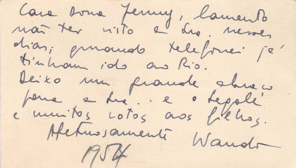 Lamenda não ter visto Jenny antes da partida do casal Segall para o Rio de Janeiro