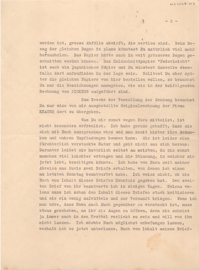 Victor Rubin se diz preocupado em levar a filha Nora à razão; "quando sei que ela está tão endurecida com Segall, algo tem que acontecer para abrir-lhe os olhos, porque ela ainda parece apaixonada pelo idiota e não quer deixá-lo ir"; Victor Rubin dá indicações de papel fino, japonês, para a impressão das gravuras de Segall; diz que em Paris ele pode encontrar vários tipos de papel e bem mais baratos.