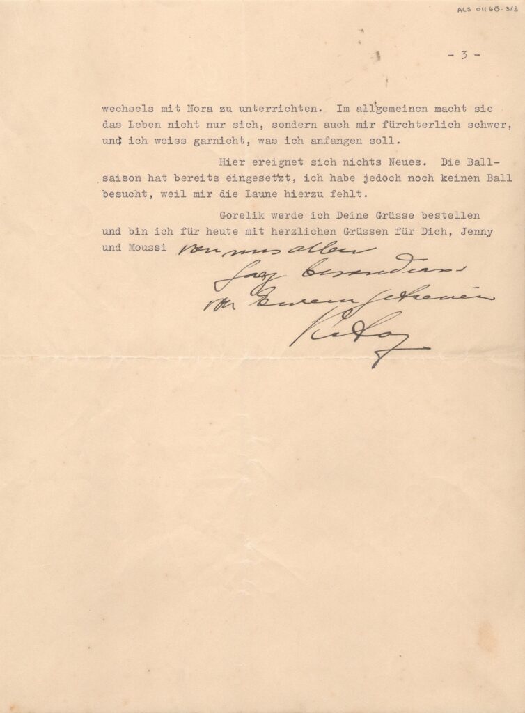 ALS Pasta: "Correspondance Victor Rubin - 1929; 1930; 1931". Bilhete aposto: Correspondência revista por LS 1929 - 1930 - 1931 [letra Fanny Faintych]