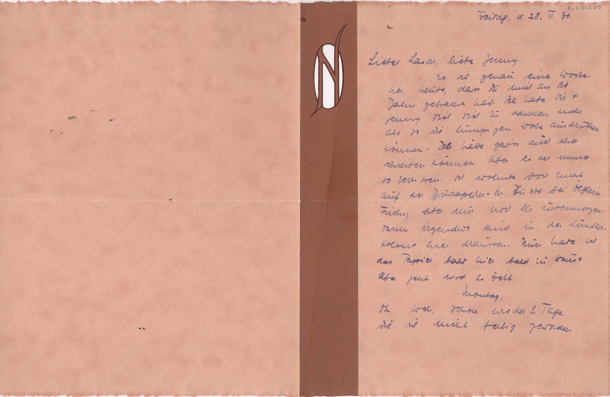 ALS Pasta: "Correspondance 1928 - 1930". Bilhete aposto: Correspondência revista por LS 1928 - 1930