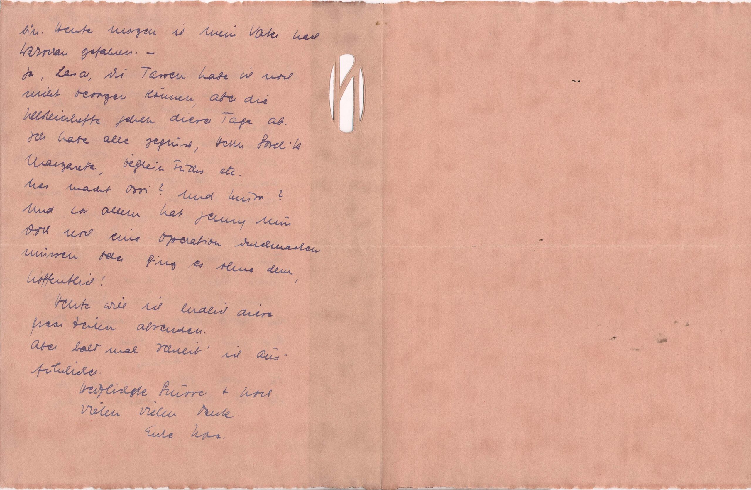 Carta de Nora Rubin para Jenny e Lasar Segall