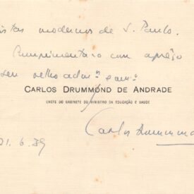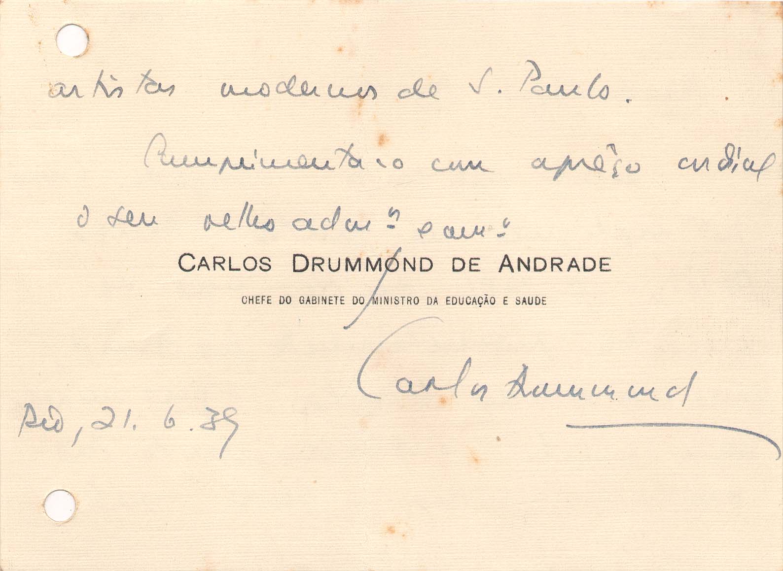 Cartão de visita: "Carlos Drummond de Andrade - Chefe do Gabinete do Ministério da Educação e Saúde" / Item Relacionado: Recíproca: ALS 01988 ; ALS 1994