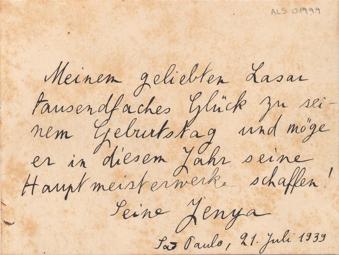 ALS Envelope: (Cartões de D. Jenny para Segall e cartões de agradecimento por ocasião do casamento junho 1925) [letra Vera dHorta]
