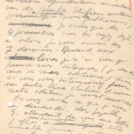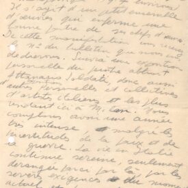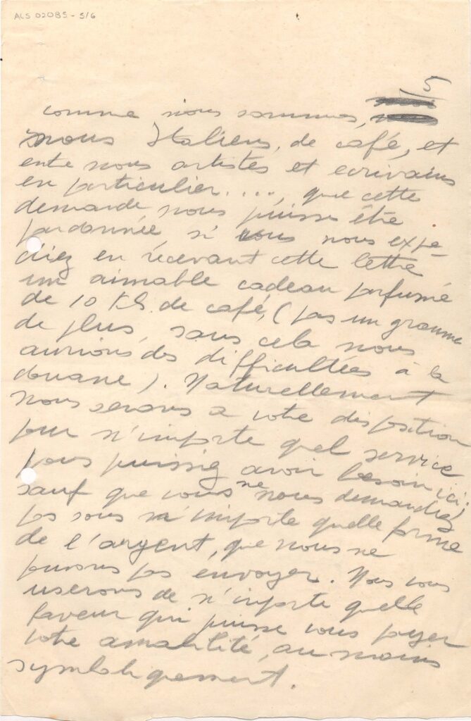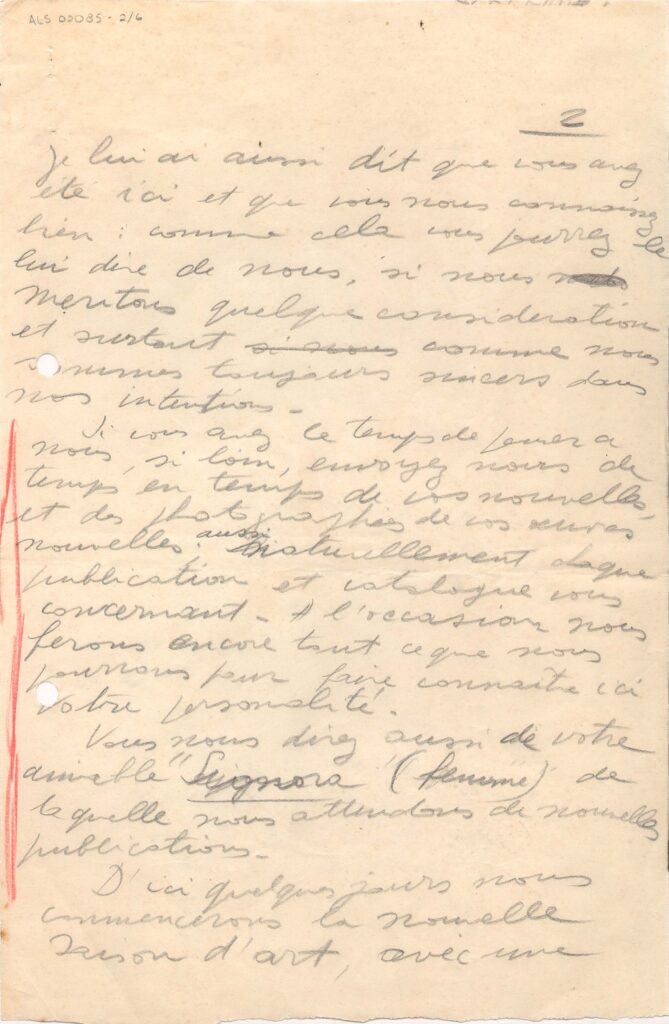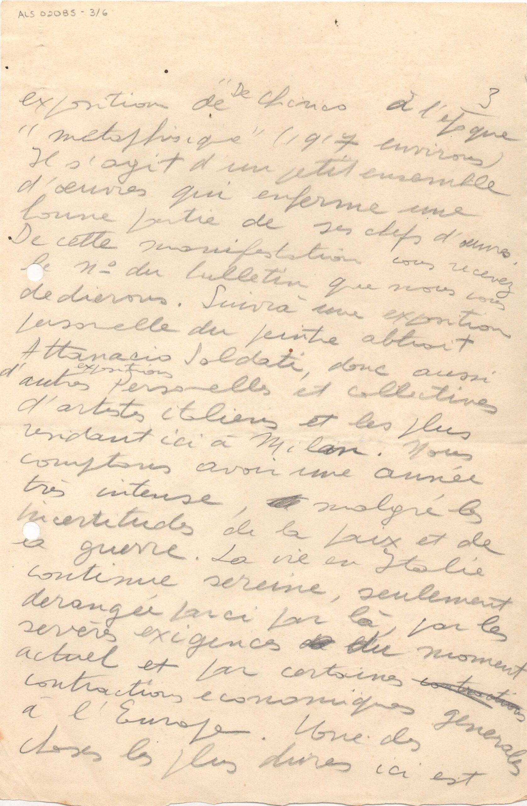 Cópia manuscrita em francês, por Lasar Segall, de carta escrita em italiano por Peppino Ghiringhelli, da Galleria del Milione Libreria, enviada a Segall em 10 de outubro de 1939
