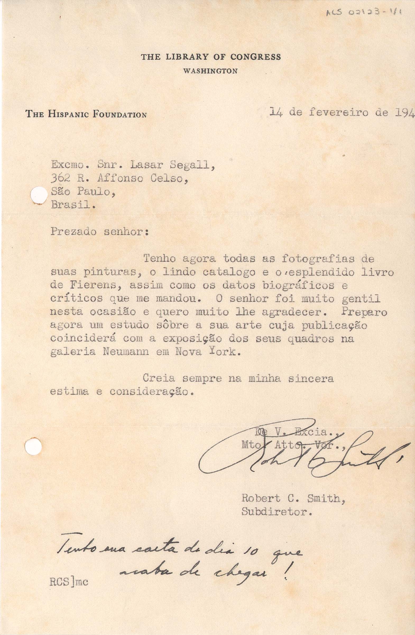 Folha timbrada: "THE LIBRARY OF CONGRESS - WASHINGTON"