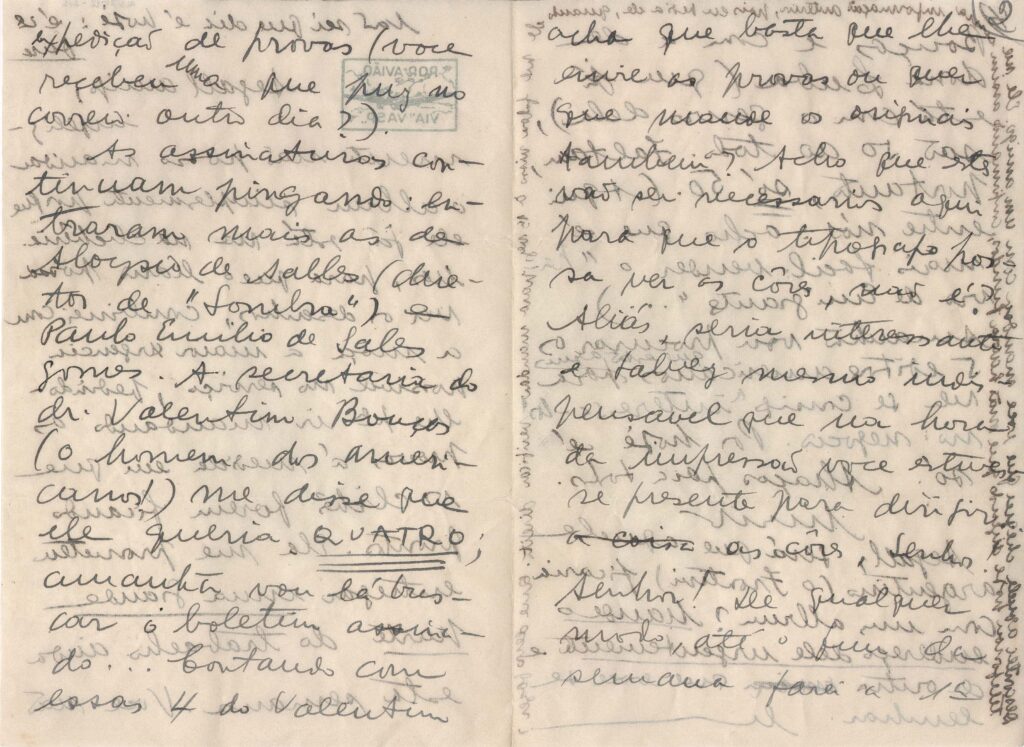 Carimbo em tinta verde: "Por avião - via Vasp"