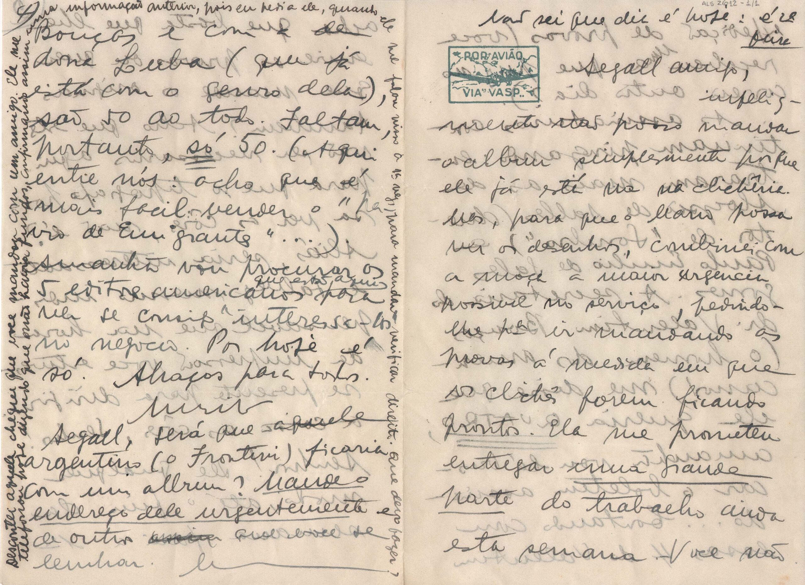 ALS Pasta: (Correspondência para Segall - anos 30 e 40 - 1ª carta de Lucy [letra Vera dHorta]