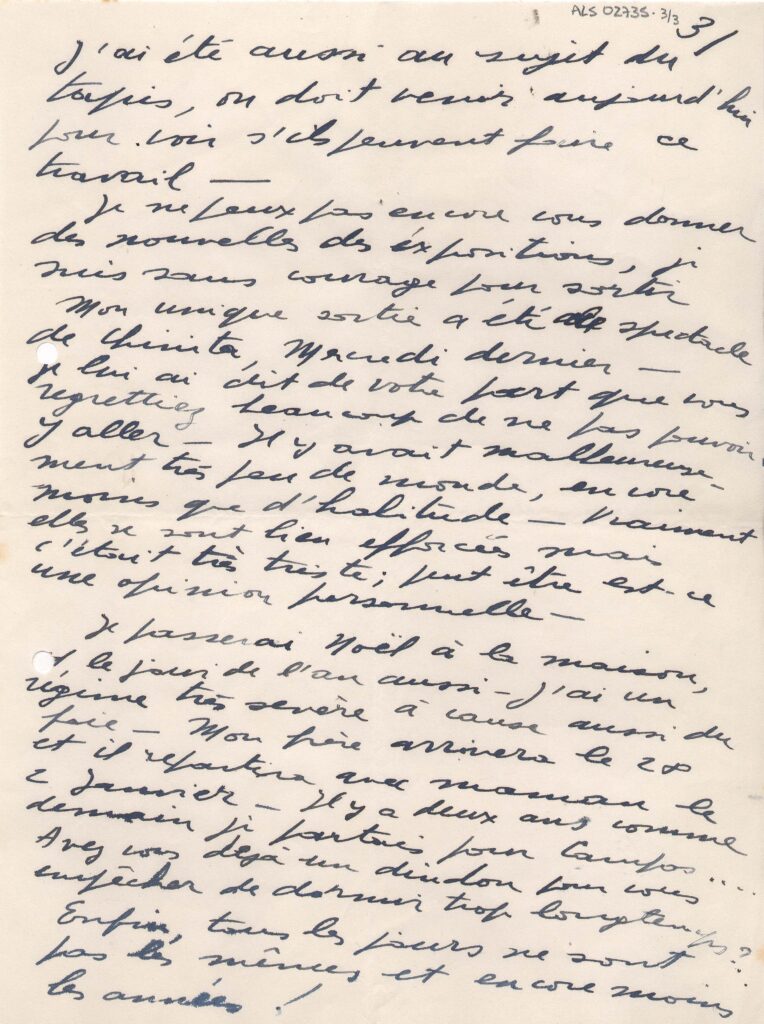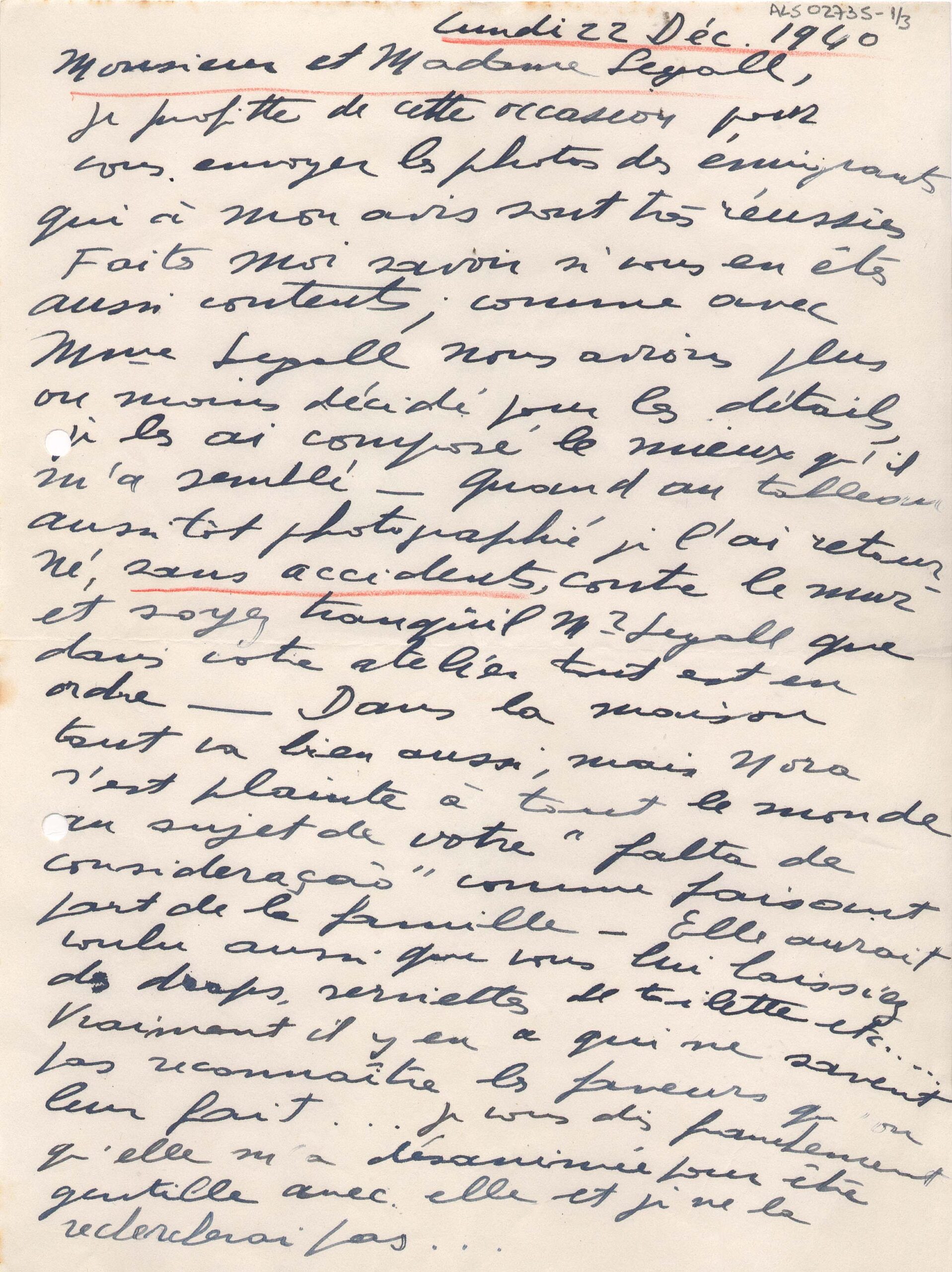 Envia as fotografias da tela Emigrantes; depois de fotografada, foi devolvida ao lugar sem acidentes; diz que no ateliê está tudo em ordem; fala das queixas de Nora Rubin; deseja que estejam aproveitando os passeios no campo; fala da guerra; não tem visto exposições, mas foi ao espetáculo de Chinita Ullman; diz que a polícia apreendeu as revistas Life e Time