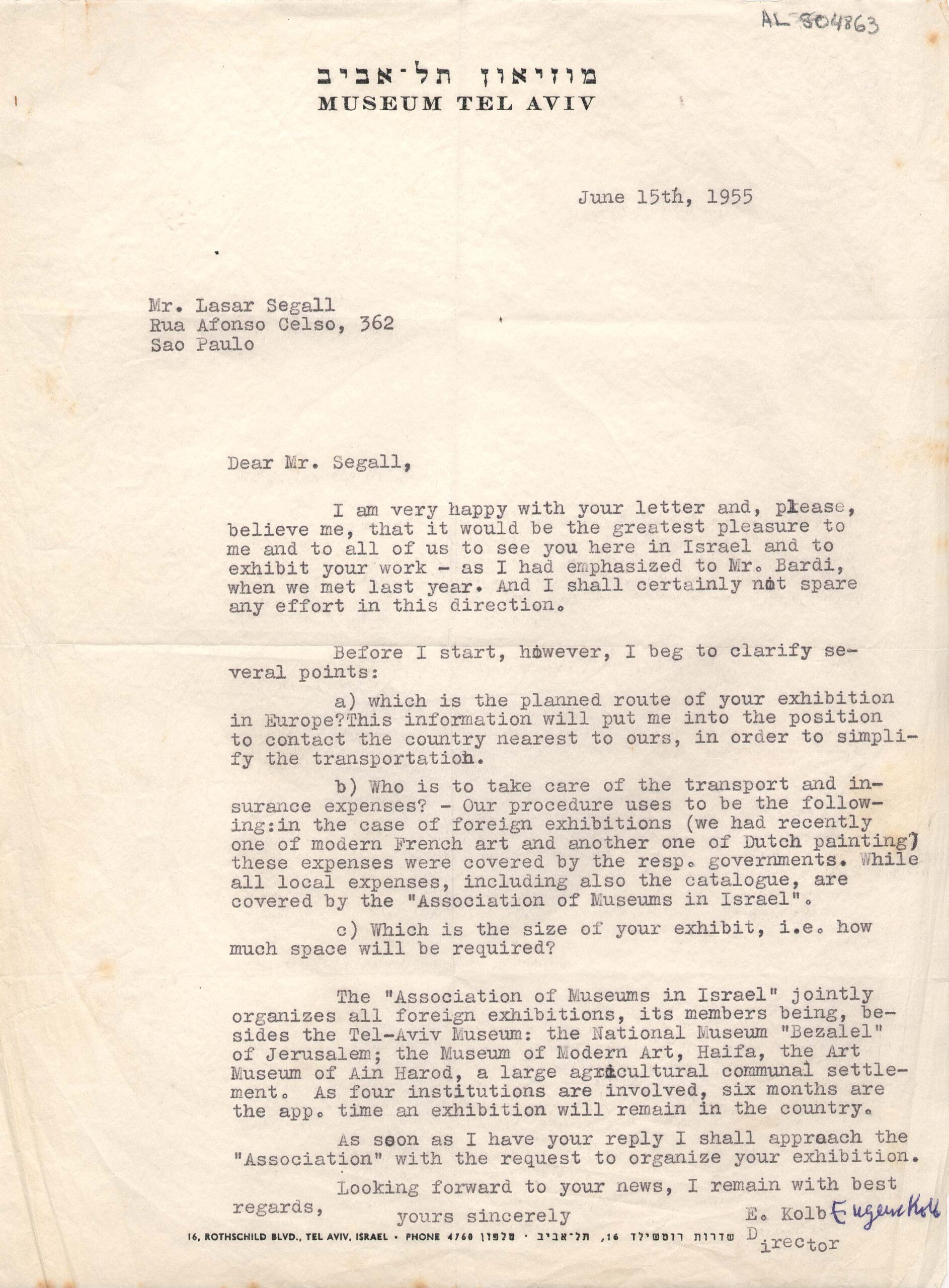 Papel timbrado: "Museum Tel Aviv"; assinatura em tinta azul / Item Relacionado: Recíproca: ALS 04863