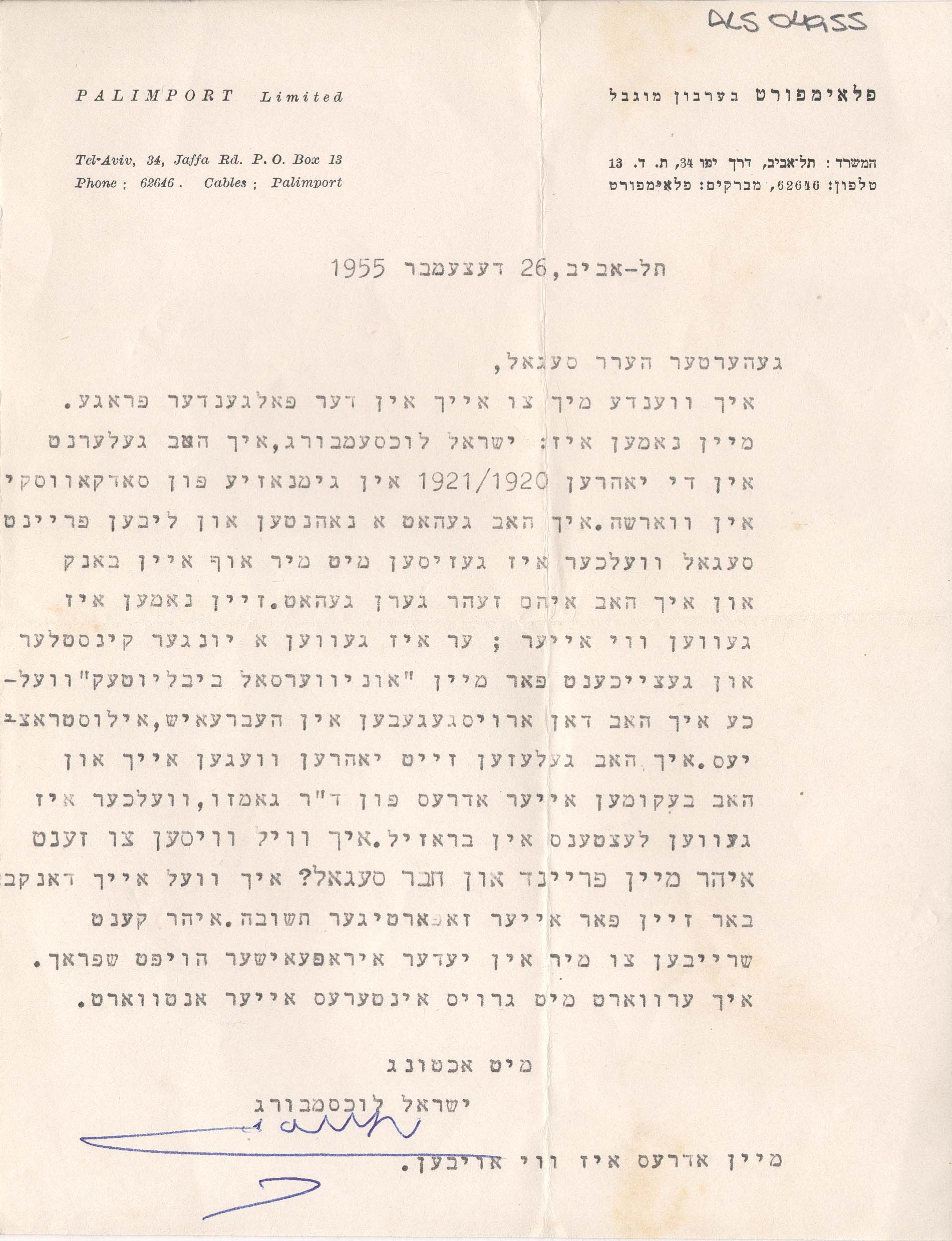 Papel timbrado: "Palimport Limited"; assinatura em tinta azul