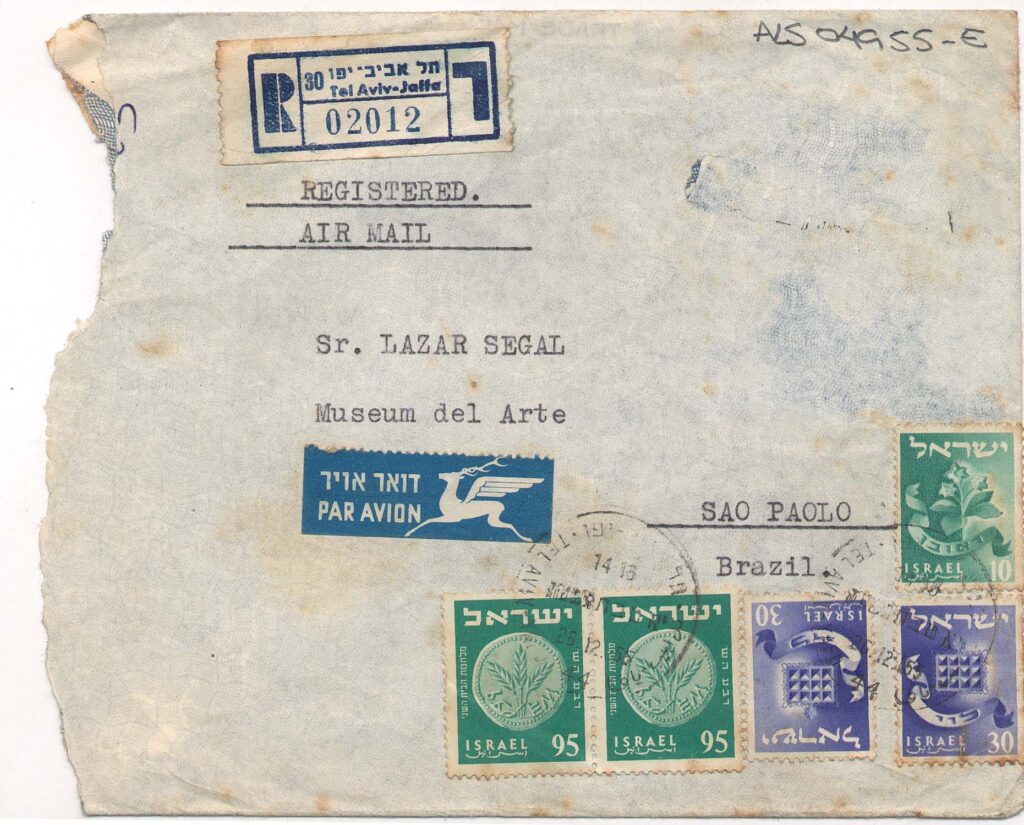 Informa que estudou, nos anos 1920-1921, no ginásio Sadkovski, em Varsóvia, e que teve um amigo que dividia o banco escolar, de nome também Segall, que ele estimava muito; diz que o companheiro de escola era um jovem artista que desenhava ilustrações para sua Biblioteca universal, que ele publicava em hebraico; leu a respeito de Lasar Segall, recebeu seu endereço do dr. Gamzu, e pergunta se Segall seria o seu amigo; diz que espera uma pronta resposta, em qualquer uma das línguas europeias importantes