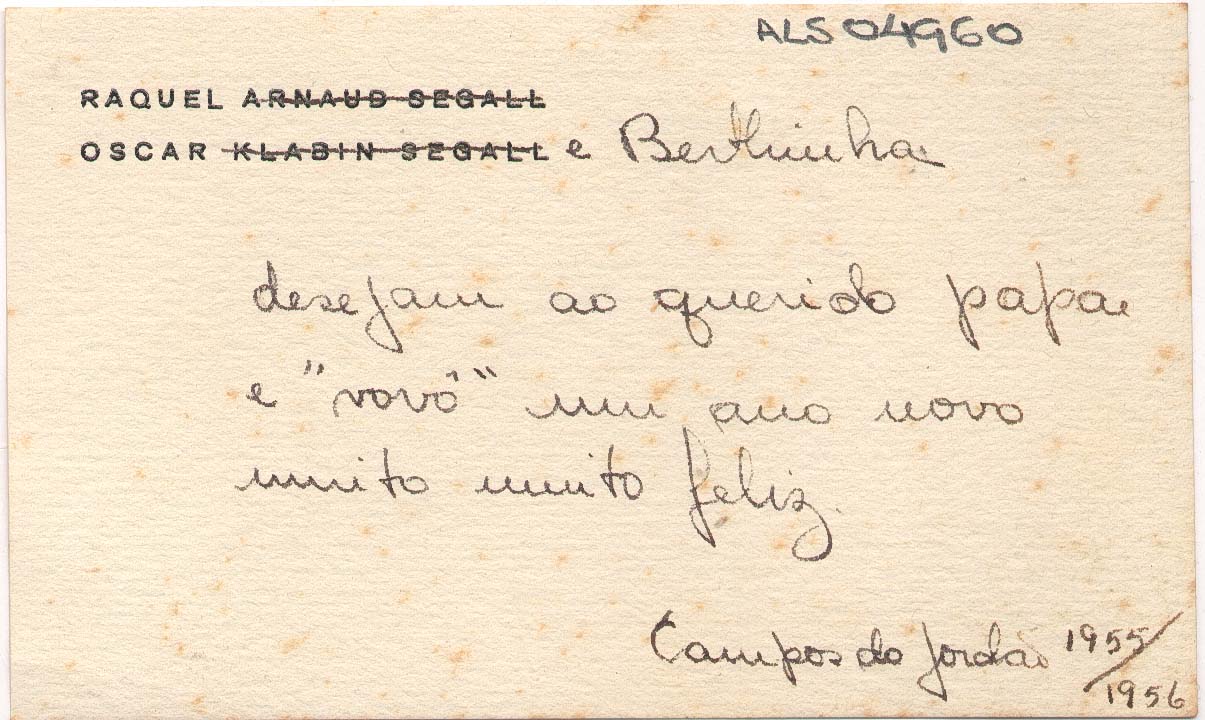 ALS Pasta: (Correspondência para Segall - anos 50 - gaveta 1) [letra Vera dHorta]