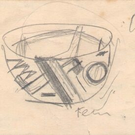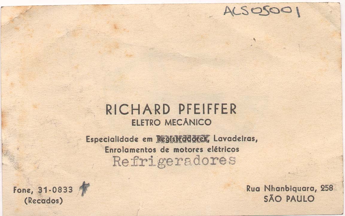 Datiloscrito: "Refrigeradores"; desenho em grafite no verso